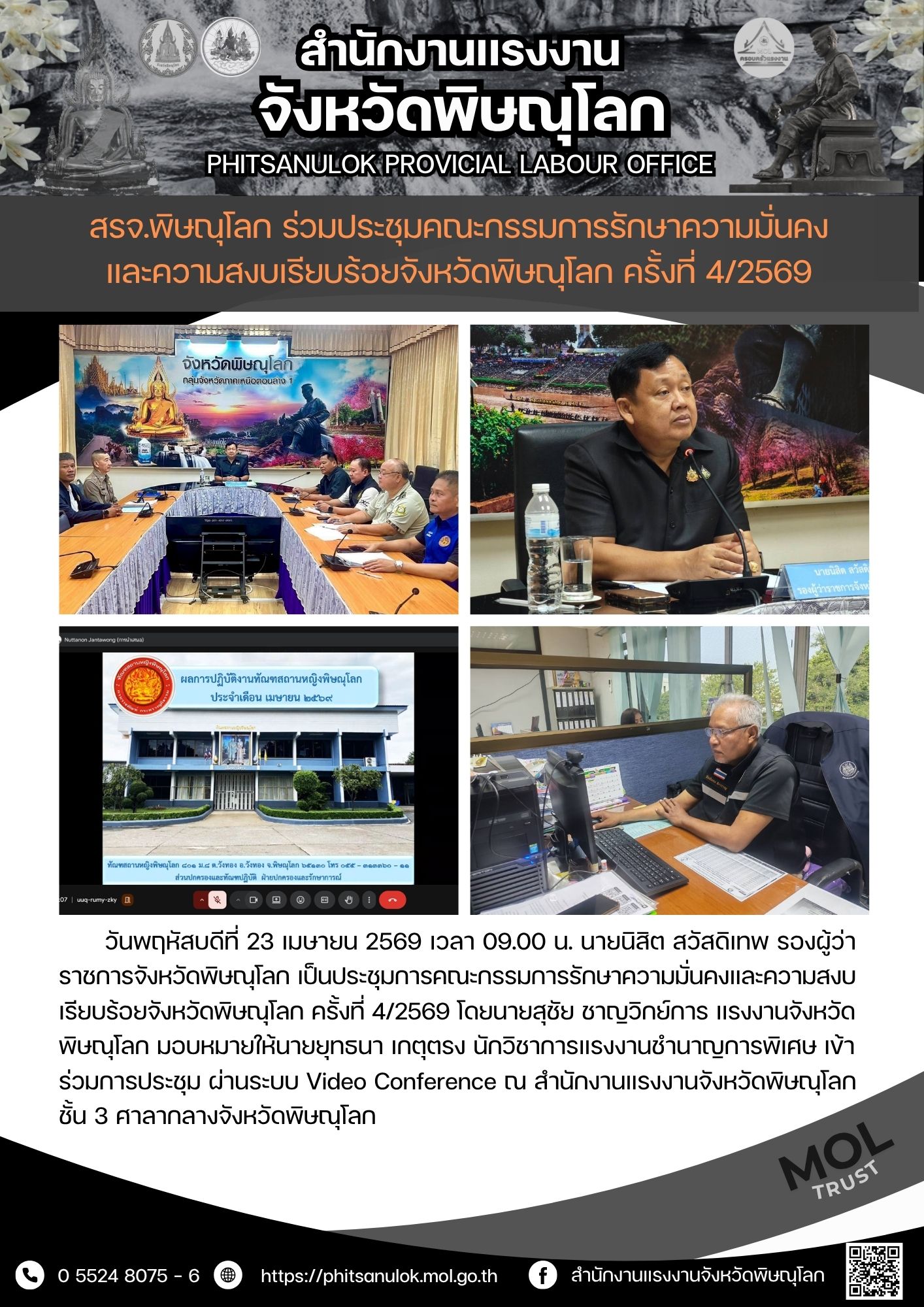 สรจ.พิษณุโลก ร่วมประชุมคณะกรรมการรักษาความมั่นคง และความสงบเรียบร้อยจังหวัดพิษณุโลก ครั้งที่ 4/2569
