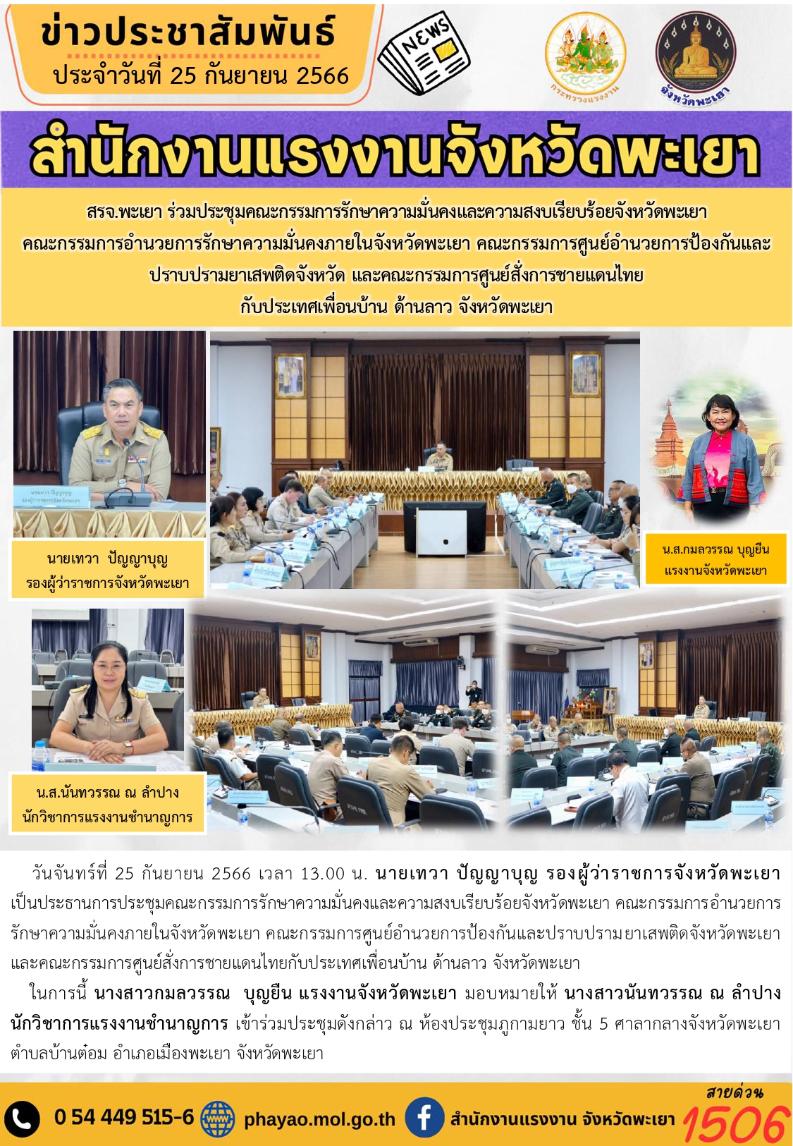 สรจ.พะเยา ร่วมประชุมคณะกรรมการรักษาความมั่นคงและความสงบเรียบร้อยจังหวัดพะเยา