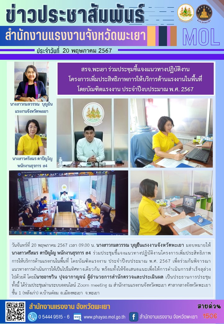 สรจ.พะเยา ร่วมประชุมชี้แจงแนวทางปฏิบัติงานโครงการเพิ่มประสิทธิภาพการให้บริการด้านแรงงานในพื้นที่
