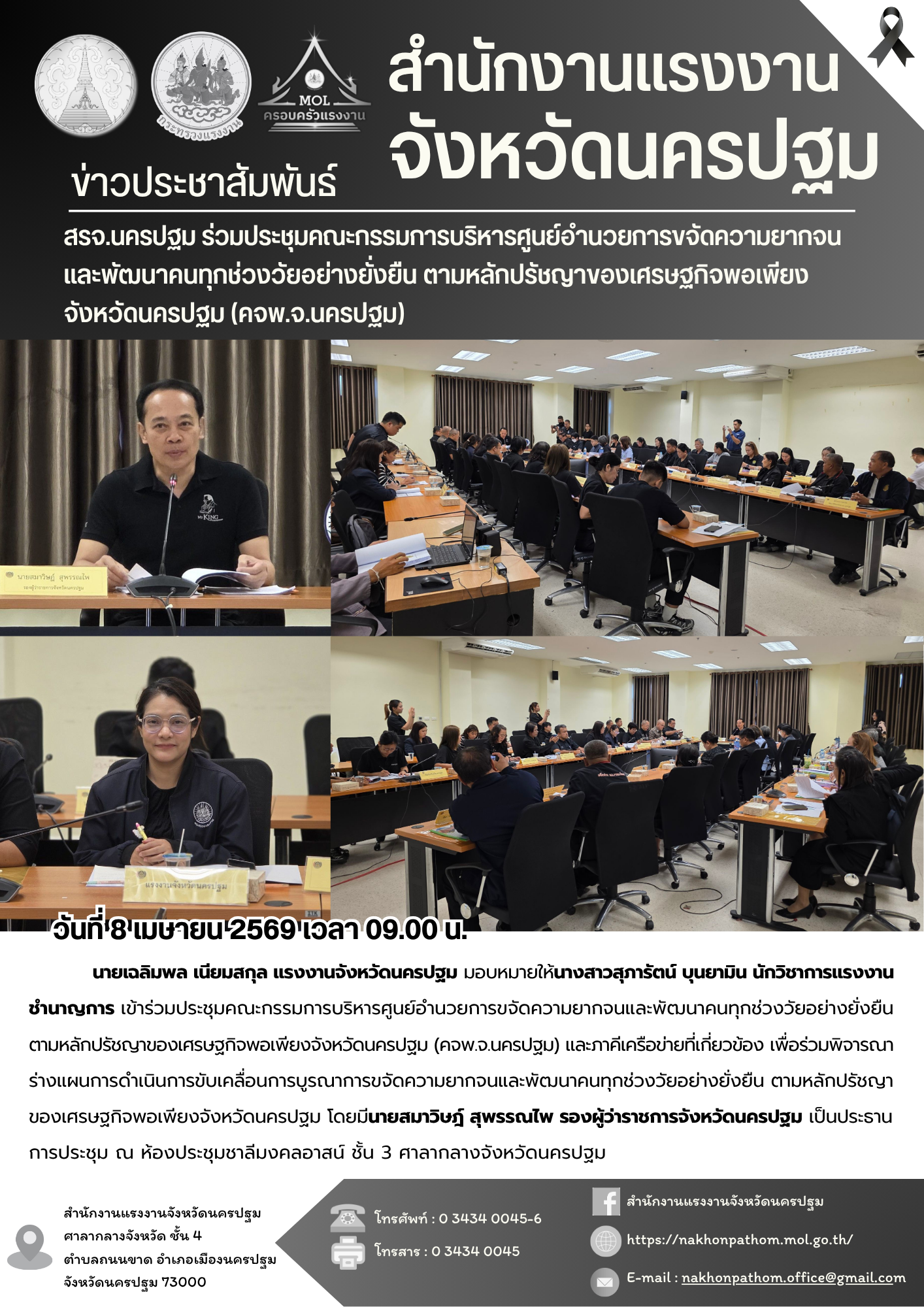 สรจ.นครปฐม ร่วมประชุมคณะกรรมการบริหารศูนย์อำนวยการขจัดความยากจนและพัฒนาคนทุกช่วงวัยอย่างยั่งยืน ตามหลักปรัชญาของเศรษฐกิจพอเพียงจังหวัดนครปฐม (คจพ.จ.นครปฐม)