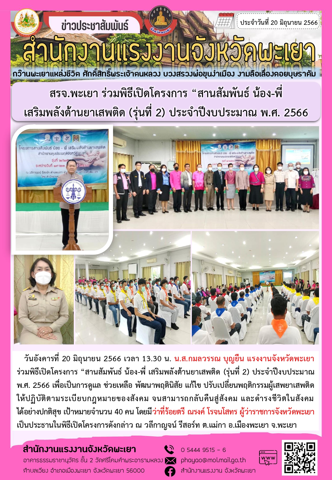 สรจ.พะเยา ร่วมพิธีเปิดโครงการ “สานสัมพันธ์ น้อง-พี่ เสริมพลังต้านยาเสพติด (รุ่นที่ 2) ประจำปีงบประมาณ พ.ศ. 2566
