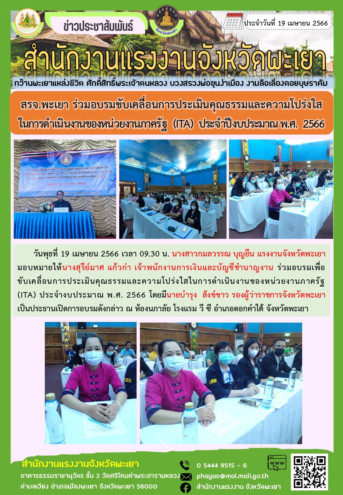 สรจ.พะเยา ร่วมอบรมขับเคลื่อนการประเมินคุณธรรมและความโปร่งใสในการดำเนินงานของหน่วยงานภาครัฐ (ITA) ประจำปีงบประมาณ พ.ศ. 2566