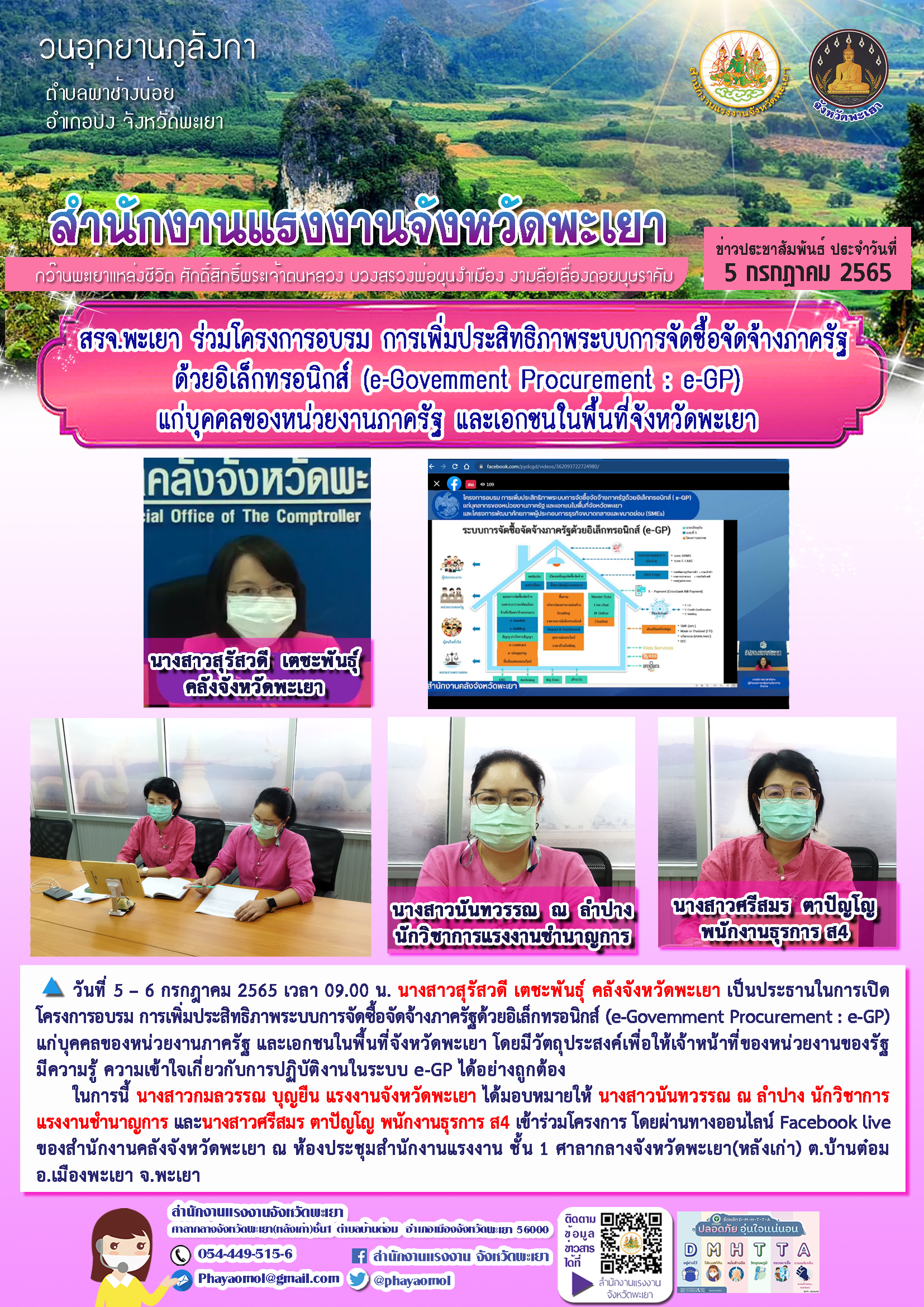 สรจ.พะเยา ร่วมโครงการอบรมการเพิ่มประสิทธิภาพระบบการจัดซื้อจัดจ้างภาครัฐด้วยอิเล็กทรอนิกส์ (e-Govemment Procurement : e-GP) แก่บุคคลของหน่วยงานภาครัฐ และเอกชนในพื้นที่จังหวัดพะเยา