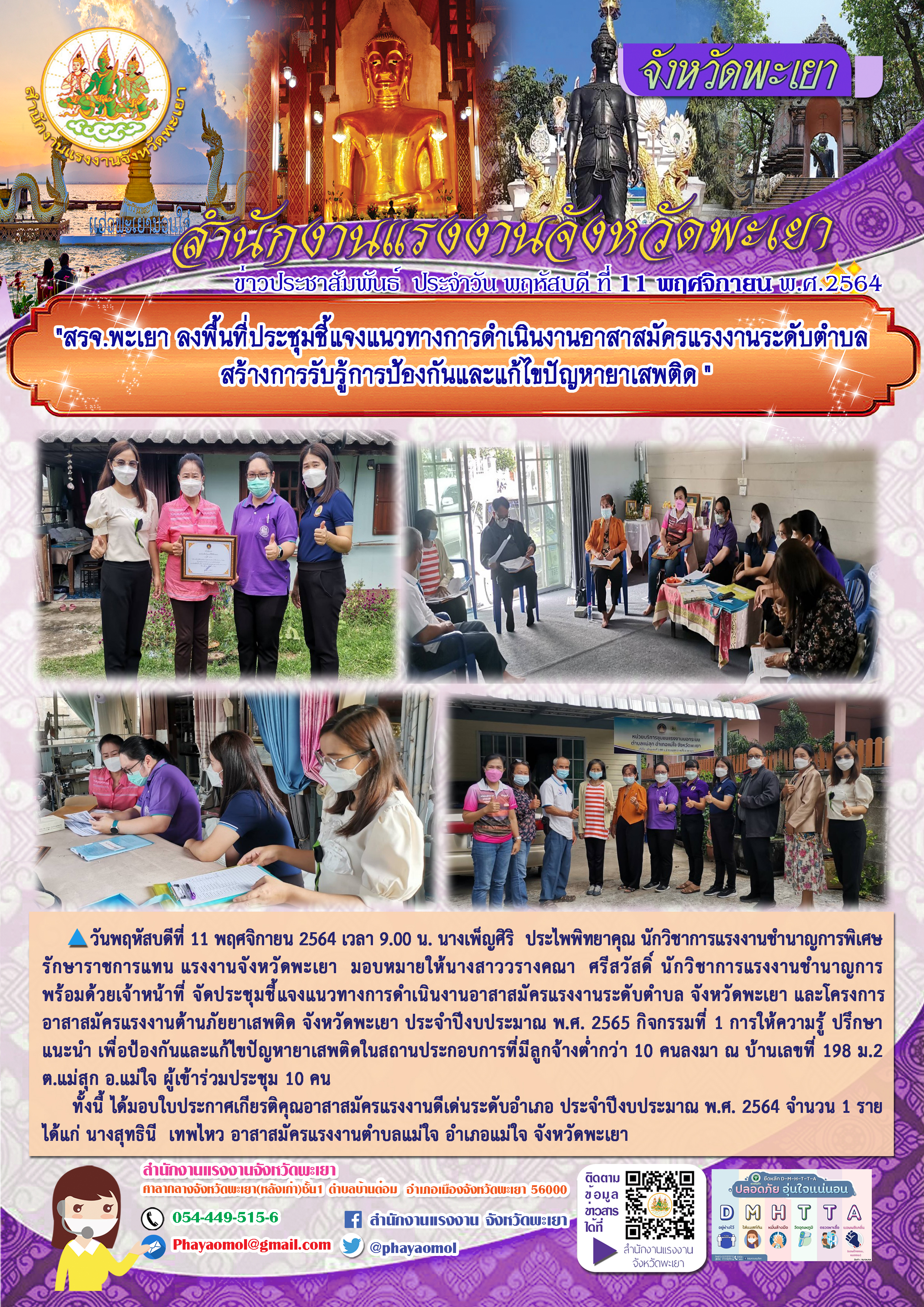 “สรจ.พะเยา ลงพื้นที่ประชุมชี้แจงแนวทางการดำเนินงานอาสาสมัครแรงงานระดับตำบล สร้างการรับรู้การป้องกันและแก้ไขปัญหายาเสพติด “