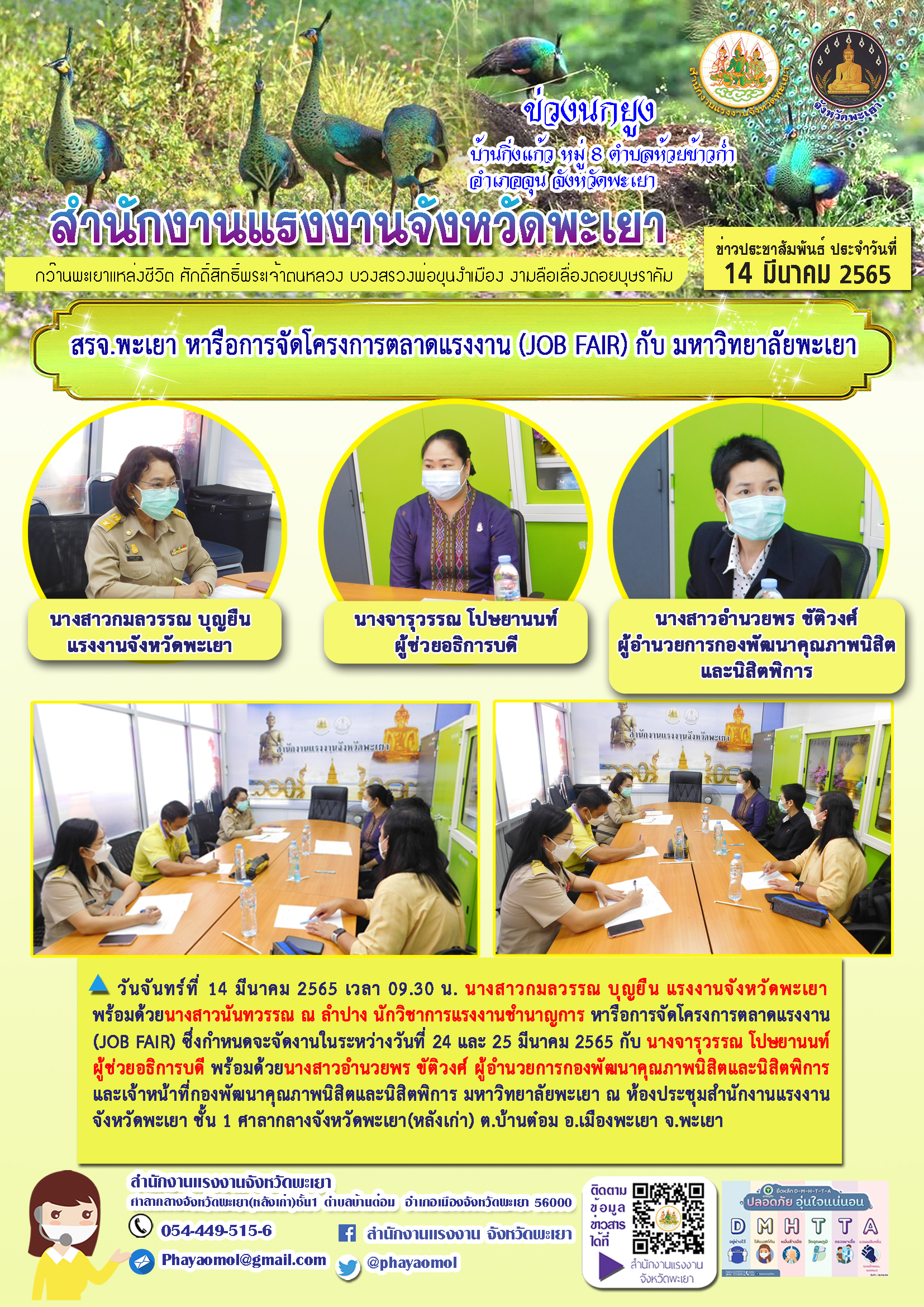 สรจ.พะเยา หารือการจัดโครงการตลาดแรงงาน (JOB FAIR) กับ มหาวิทยาลัยพะเยา