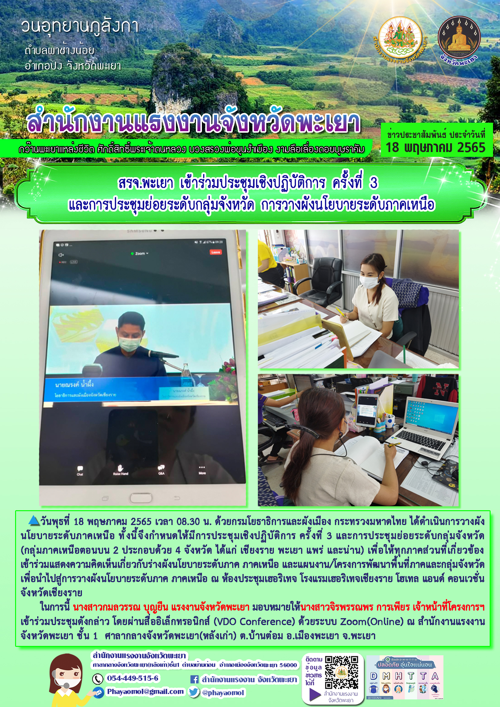 สรจ.พะเยา เข้าร่วมประชุมเชิงปฏิบัติการ ครั้งที่ 3 และการประชุมย่อยระดับกลุ่มจังหวัด การวางผังนโยบายระดับภาคเหนือ