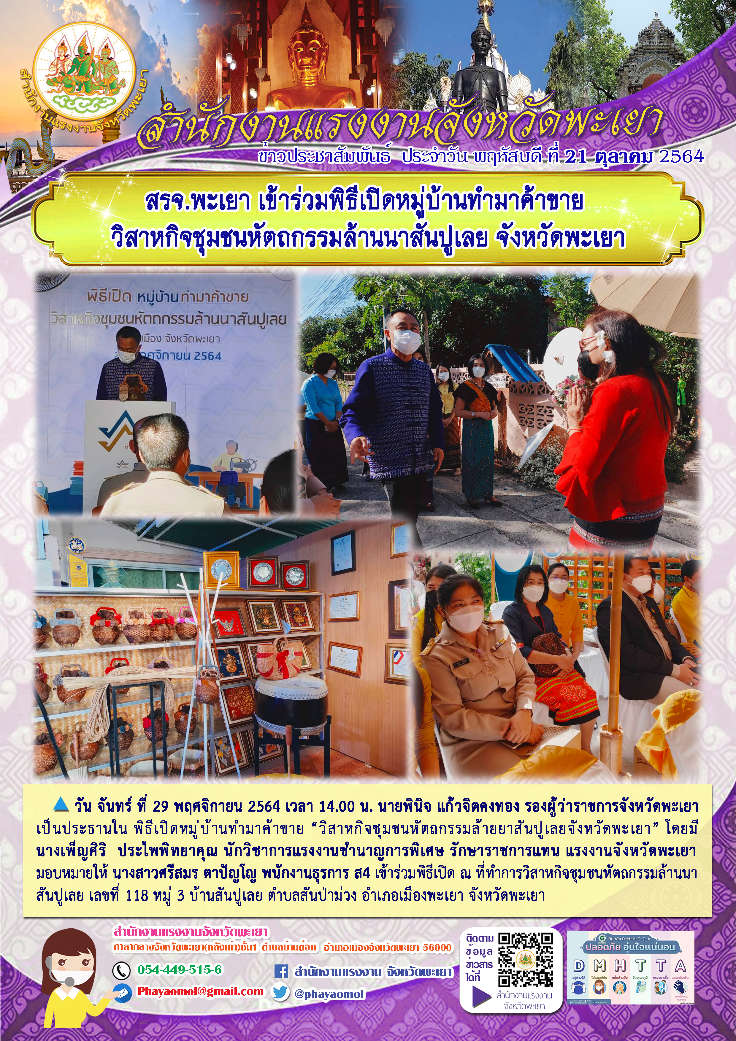 สรจ.พะเยา เข้าร่วมพิธีเปิดหมู่บ้านทำมาค้าขายวิสาหกิจชุมชนหัตถกรรมล้านนาสันปูเลย จังหวัดพะเยา