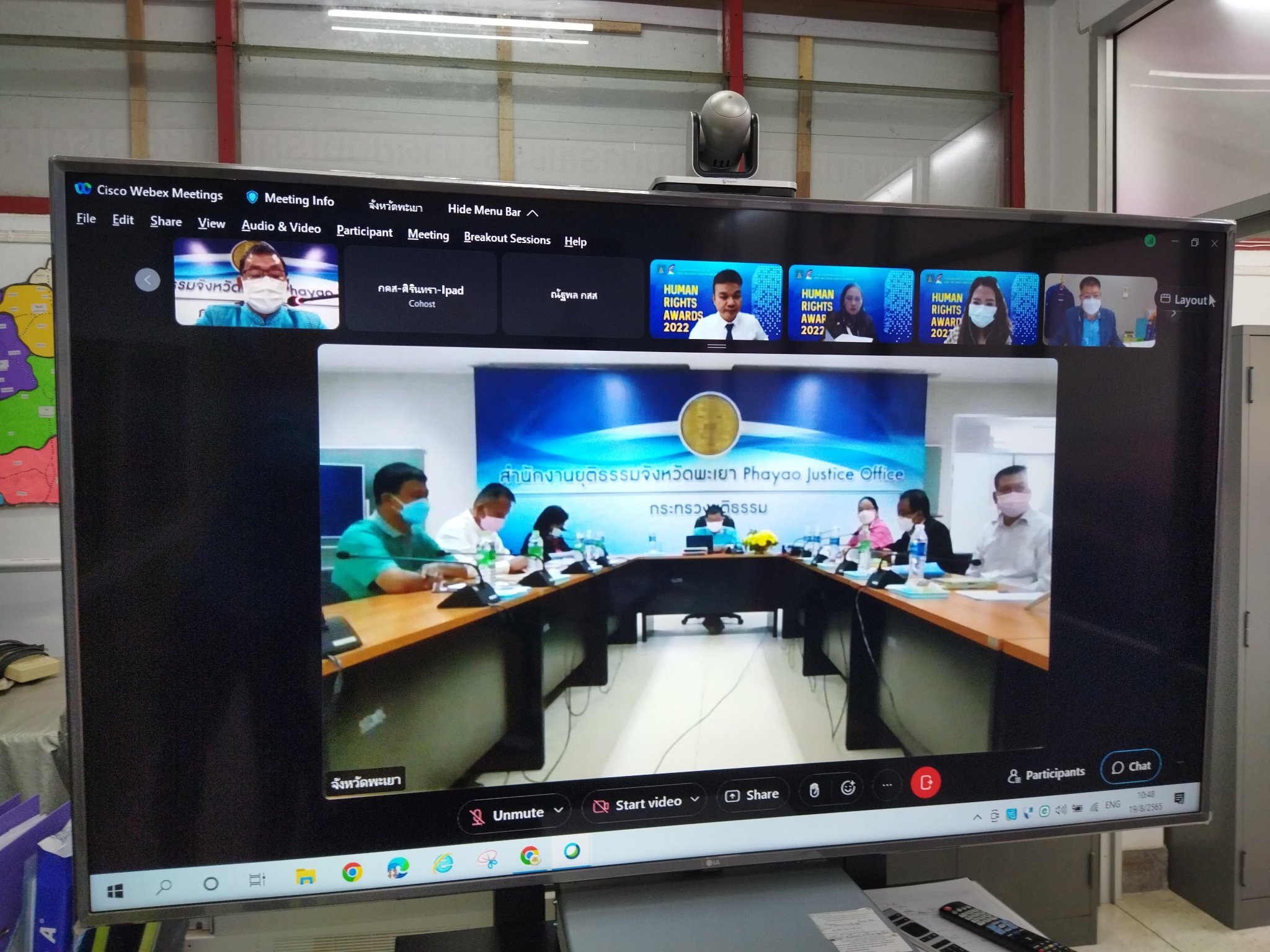 สรจ.พะเยา เข้าร่วมสังเกตการณ์เข้ารับการสัมภาษณ์ “ผลงานประกวดองค์กรต้นแบบ ด้านสิทธิมนุษยชน” จังหวัดพะเยา ผ่านระบบอิเล็กทรอนิกส์ Cisco Webex Meetings วันศุกร์ ที่ 19 สิงหาคม พ.ศ.2565 เวลา 10.00 น. นางสาวกมลวรรณ บุญยืน แรงงานจังหวัดพะเยา มอบหมายให้ นางสาวนันทวรรณ ณ ลำปาง นักวิชาการแรงงานชำนาญการ เข้าร่วมสังเกตการณ์เข้ารับการสัมภาษณ์ หน่วยงานที่ได้รับการคัดเลือกเข้าร่วมเป็นองค์กรต้นแบบด้านสิทธิมนุษยชน รอบเกณฑ์การประเมินขั้นเอกสารและการตรวจผลงานเชิงประจักษ์ (Site Visit Review) ในรางวัลประเภทองค์กรภาครัฐ “ผลงานประกวดองค์กรต้นแบบ ด้านสิทธิมนุษยชน”
