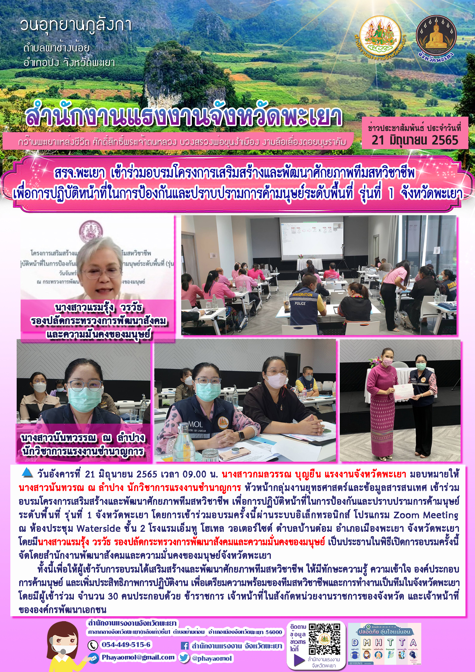 สรจ.พะเยา เข้าร่วมอบรมโครงการเสริมสร้างและพัฒนาศักยภาพทีมสหวิชาชีพ เพื่อการปฏิบัติหน้าที่ในการป้องกันและปราบปรามการค้ามนุษย์ระดับพื้นที่ รุ่นที่ 1 จังหวัดพะเยา