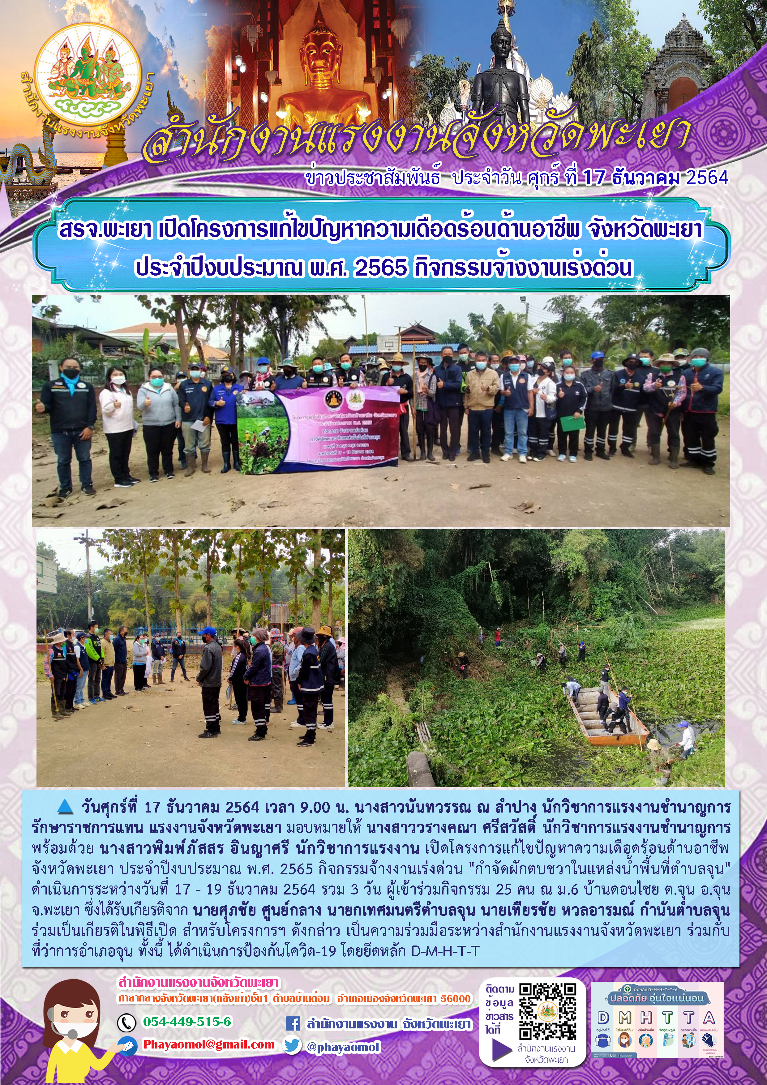 สรจ.พะเยา เปิดโครงการแก้ไขปัญหาความเดือดร้อนด้านอาชีพ จังหวัดพะเยา ประจำปีงบประมาณ พ.ศ. 2565 กิจกรรมจ้างงานเร่งด่วน