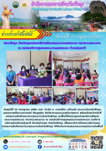วันศุกร์ที่ 22 กรกฎาคม 2565 เวลา 13.00 น. นายปรีชา แก้วมณี แรงงานจังหวัดพัทลุง มอบหมายให้นางวราภรณ์ กัณฐตุริต นักวิชาการแรงงานชำนาญการ พร้อมด้วยเจ้าหน้าที่หน่วยงานสังกัดกระทรวงแรงงานจังหวัดพัทลุง ลงพื้นที่จัดประชุมหน่วยบริการสัญจรแรงงานนอกระบบ กระทรวงแรงงาน ณ หน่วยบริการชุมชนแรงงานนอกระบบ องค์การบริหารส่วนตำบลทุ่งนารี อำเภอป่าบอล จังหวัดพัทลุง เพื่อแนะนำภารกิจและบริการของหน่วยงานสังกัดกระทรวงแรงงานจังหวัดพัทลุง ให้กับประชาชนและแรงงานนอกระบบในพื้นที่