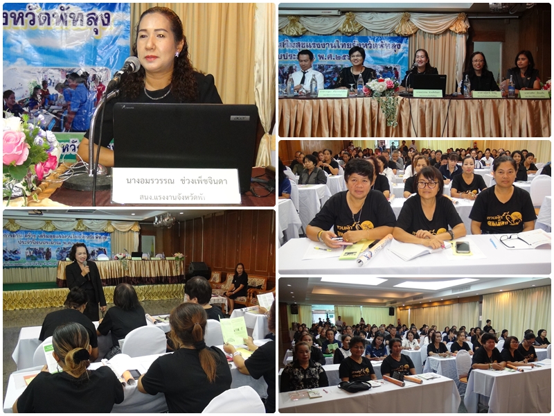 เมื่อวันที่ 11 มกราคม 2560 นางอมรวรรณ ช่วงเพ็ชจินดา แรงงานจังหวัดพัทลุง จัดโครงการสัมมนาเชิงปฏิบัติการเสริมสร้างความเข้มแข็งเครือข่ายแรงงานนอกระบบ ภายใต้โครงการสาน สร้าง เสริมสุขแรงงานไทย จังหวัดพัทลุง ประจำปี พ.ศ. 2560 (กิจกรรมที่ 2 สานสร้างความเข้มแข็งระหว่างอาสาสมัครแรงงาน เครือข่ายแรงงาน และแกนนำแรงงานนอกระบบ) เพื่อเตรียมส่งเสริมกลุ่มแรงงานนอกระบบให้เข้มแข็ง โดยมีผู้เข้าร่วมประชุมประกอบด้วยแกนนำอาสาสมัครแรงงาน ผู้แทนกลุ่ม OTOP กลุ่มวิสาหกิจชุมชน กลุ่มรับงานไปทำที่บ้าน และกลุ่มอาชีพอิสระอื่นๆ จำนวน 128 คน ณ โรงแรมชัยคณาธานี ตำบลคูหาสวรรค์ อำเภอเมือง จังหวัดพัทลุง