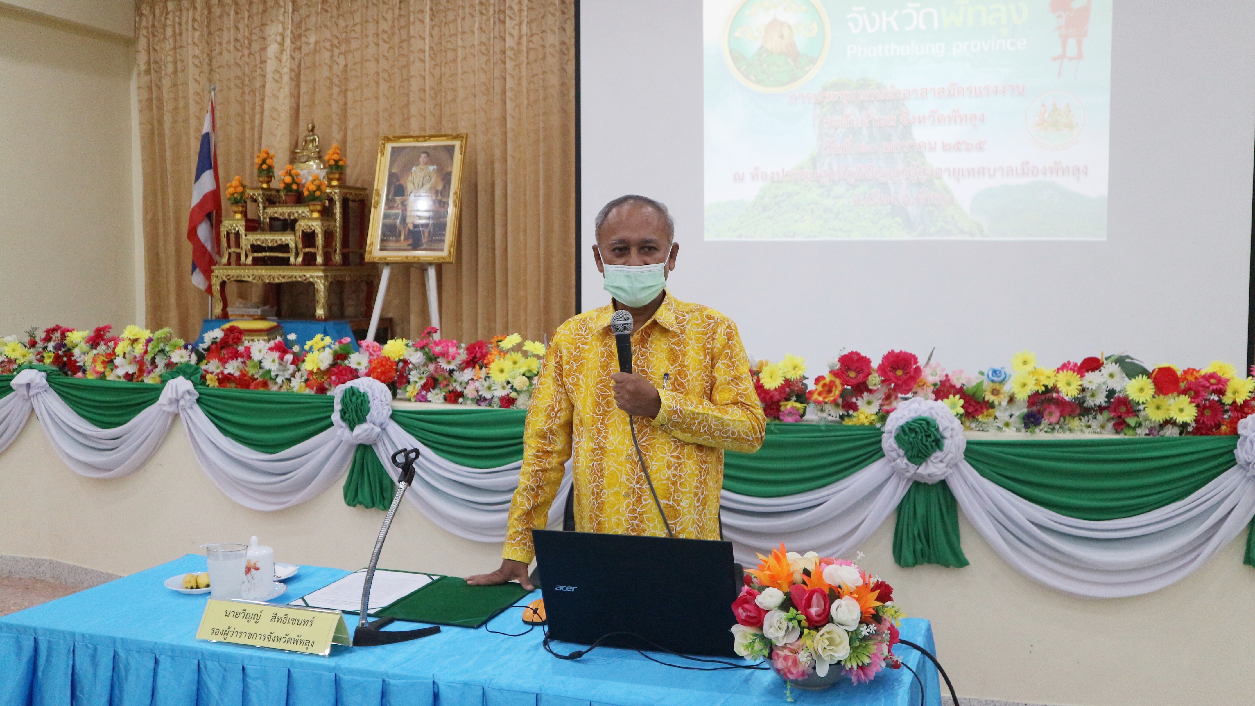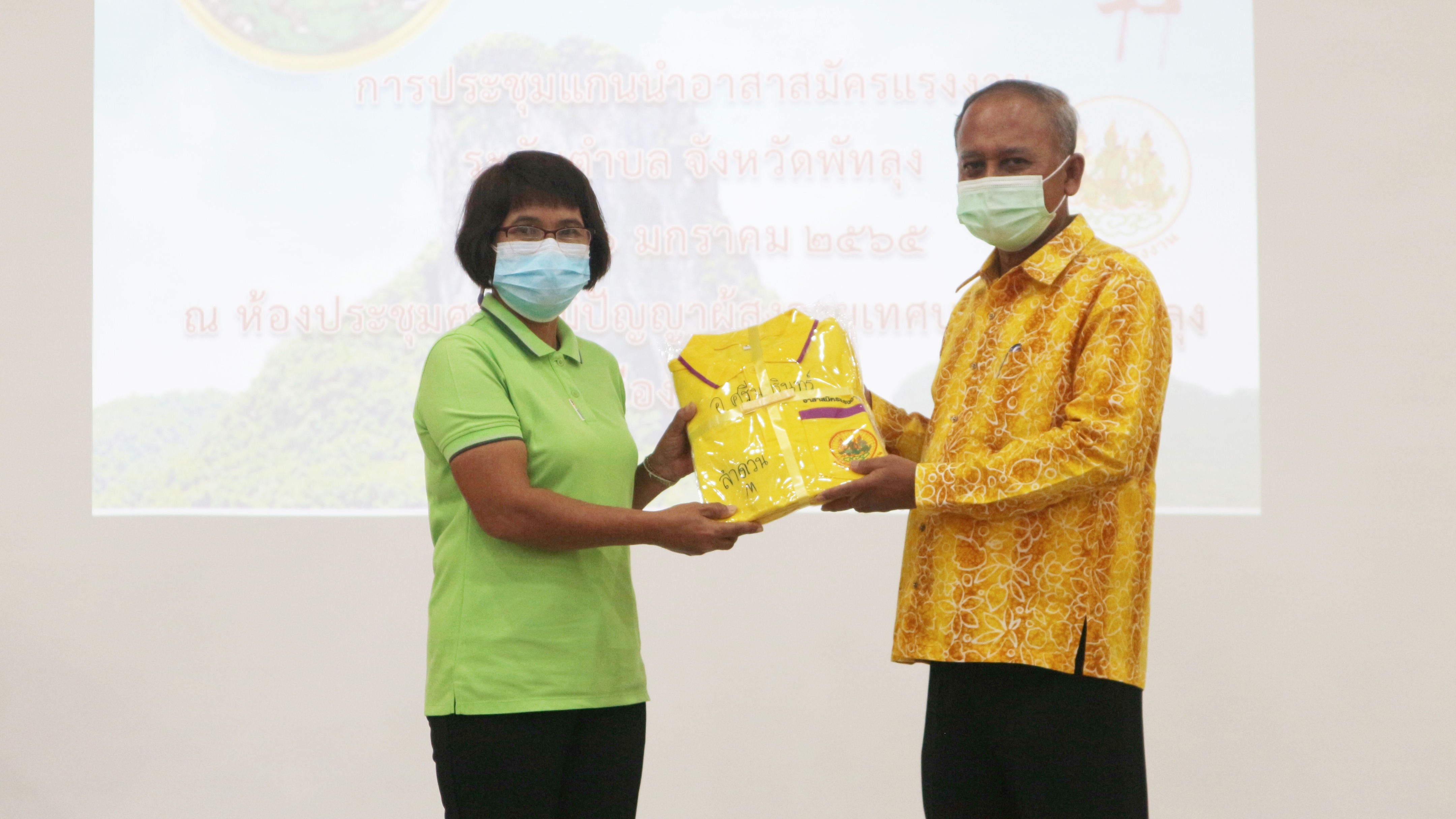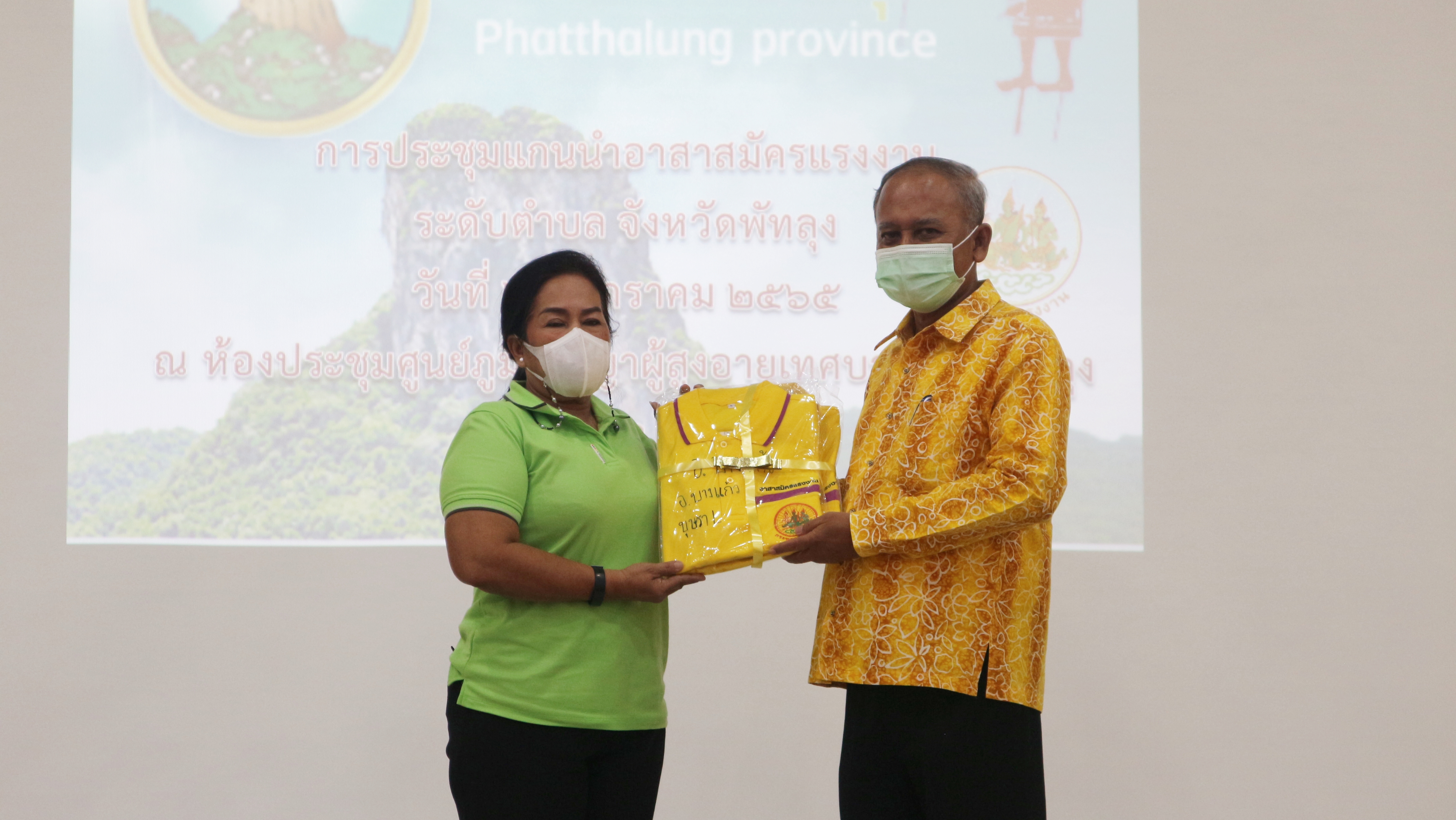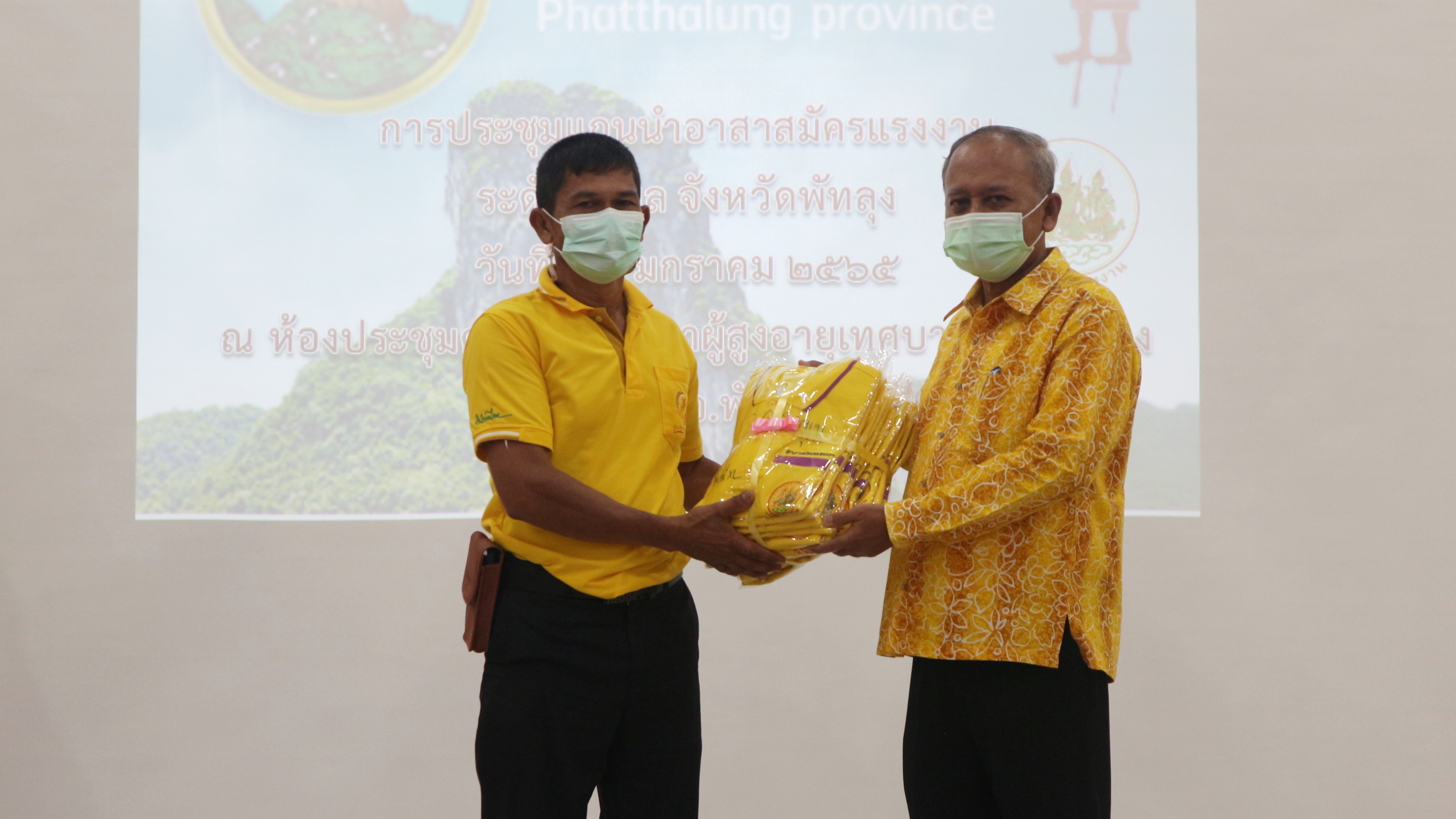 วันพฤหัสบดีที่ 20 มกราคม 2565 เวลา 14.00 น. นายวิญญ์ สิทธิเชนทร์ รองผู้ว่าราชการจังหวัดพัทลุง เป็นประธานการประชุมแกนนำอาสาสมัครแรงงานระดับตำบล จังหวัดพัทลุง ประจำเดือนมกราคม 2565 เพื่อมอบนโยบายการดำเนินงานให้กับอาสาสมัครแรงงาน รวมทั้งประสานและติดตามภารกิจงาน ตลอดจนรับทราบสถานการณ์ปัญหา/อุปสรรค จากการดำเนินงานในพื้นที่ พร้อมมอบเสื้อตราสัญลักษณ์กระทรวงแรงงาน จำนวน 65 ตัว ให้แก่อาสาสมัครแรงงาน เพื่อใส่สำหรับการปฏิบัติงานในพื้นที่ โดยมีนายปรีชา แก้วมณี แรงงานจังหวัดพัทลุง หัวหน้าส่วนราชการสังกัดกระทรวงแรงงาน พี่เลี้ยงอาสาสมัครแรงงาน และผู้เกี่ยวข้อง เข้าร่วมการประชุมฯ รวมทั้งสิ้น 84 คน ณ ห้องประชุมศูนย์ภูมิปัญญาผู้สูงอายุเทศบาลเมืองพัทลุง ตำบลคูหาสวรรค์ อำเภอเมือง จังหวัดพัทลุง