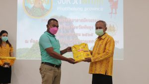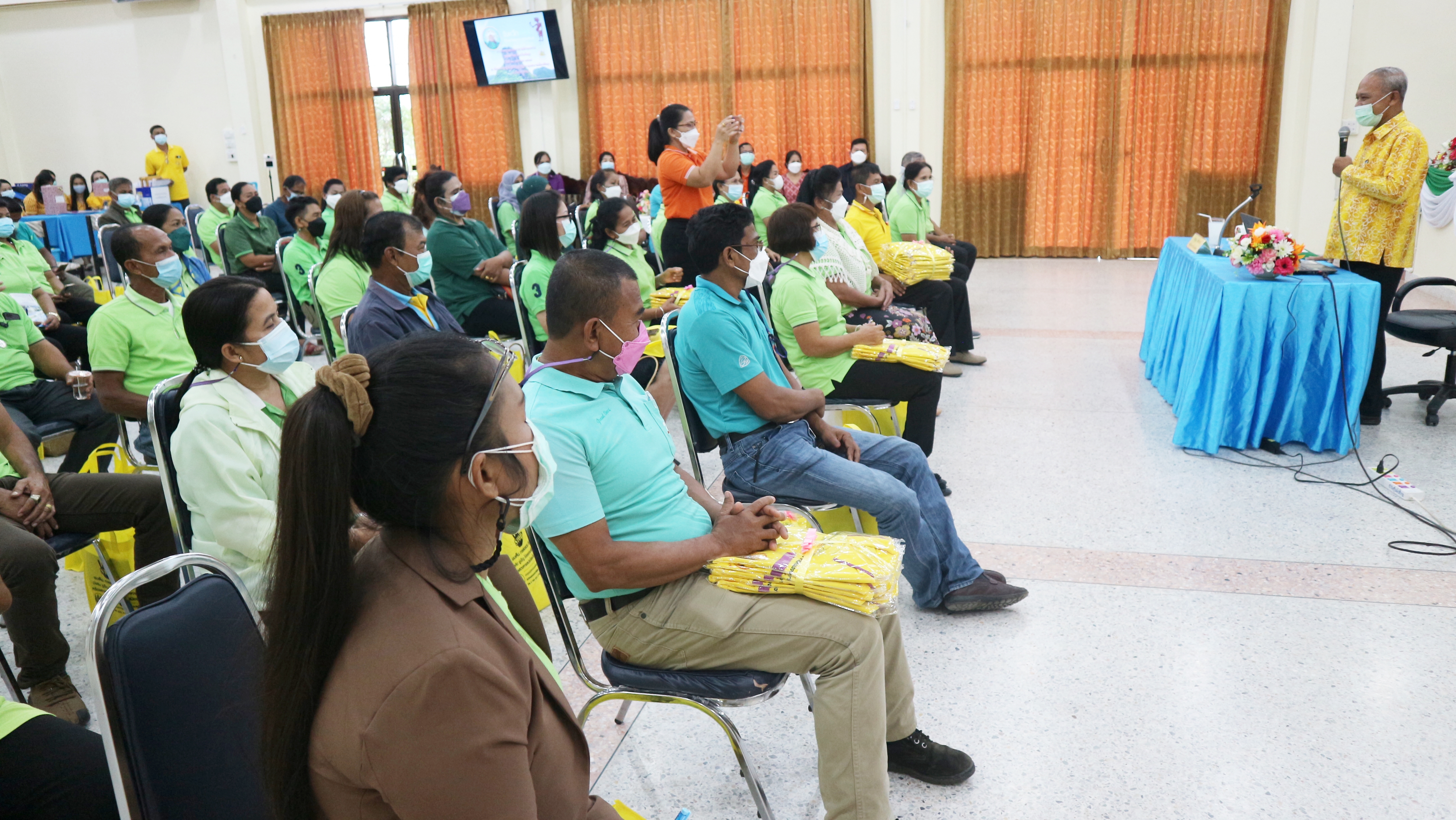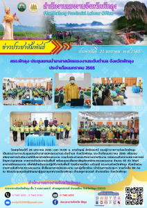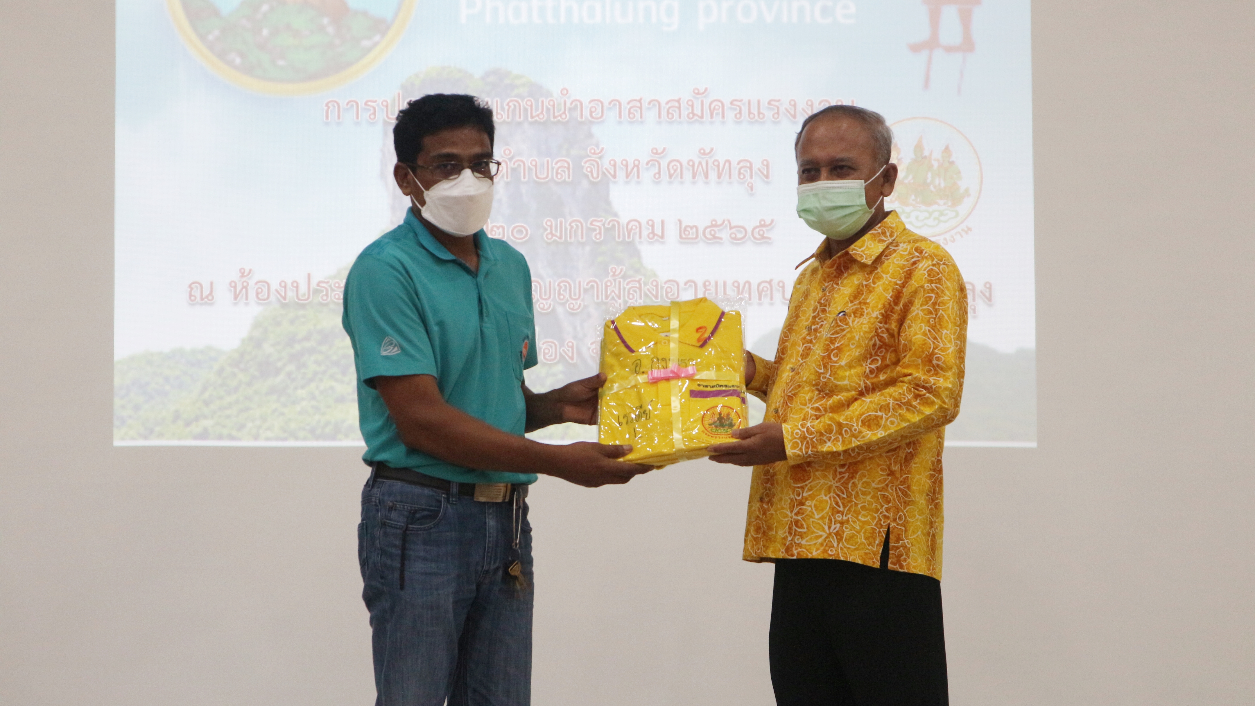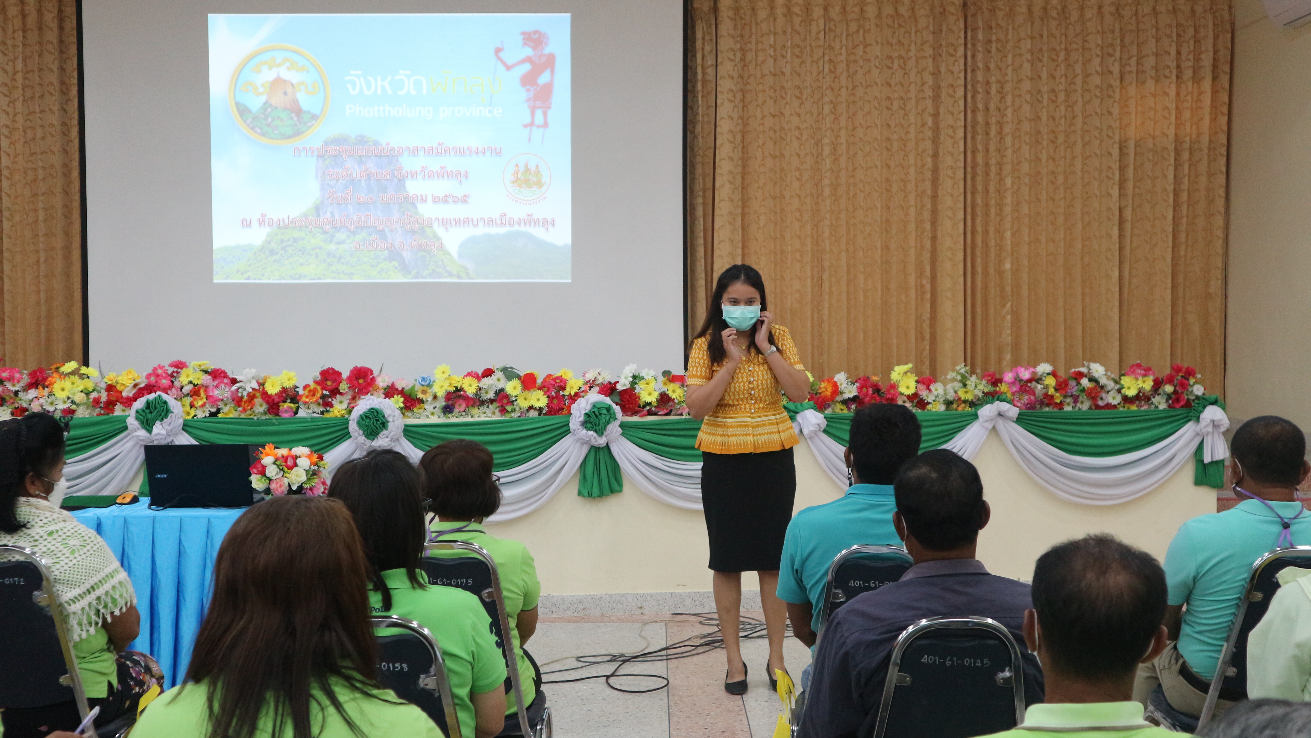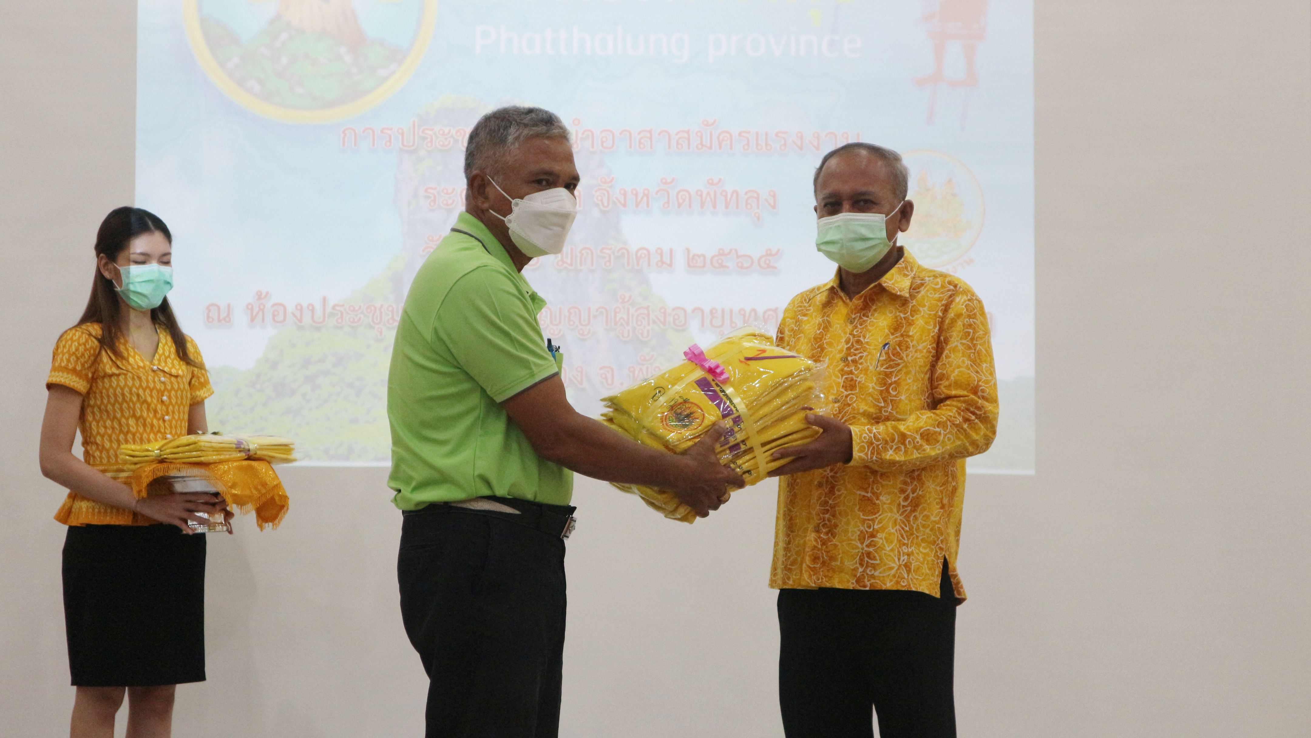 วันพฤหัสบดีที่ 20 มกราคม 2565 เวลา 14.00 น. นายวิญญ์ สิทธิเชนทร์ รองผู้ว่าราชการจังหวัดพัทลุง เป็นประธานการประชุมแกนนำอาสาสมัครแรงงานระดับตำบล จังหวัดพัทลุง ประจำเดือนมกราคม 2565 เพื่อมอบนโยบายการดำเนินงานให้กับอาสาสมัครแรงงาน รวมทั้งประสานและติดตามภารกิจงาน ตลอดจนรับทราบสถานการณ์ปัญหา/อุปสรรค จากการดำเนินงานในพื้นที่ พร้อมมอบเสื้อตราสัญลักษณ์กระทรวงแรงงาน จำนวน 65 ตัว ให้แก่อาสาสมัครแรงงาน เพื่อใส่สำหรับการปฏิบัติงานในพื้นที่ โดยมีนายปรีชา แก้วมณี แรงงานจังหวัดพัทลุง หัวหน้าส่วนราชการสังกัดกระทรวงแรงงาน พี่เลี้ยงอาสาสมัครแรงงาน และผู้เกี่ยวข้อง เข้าร่วมการประชุมฯ รวมทั้งสิ้น 84 คน ณ ห้องประชุมศูนย์ภูมิปัญญาผู้สูงอายุเทศบาลเมืองพัทลุง ตำบลคูหาสวรรค์ อำเภอเมือง จังหวัดพัทลุง
