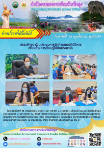 วันพฤหัสบดีที่ 18 พฤศจิกายน 2564 เวลา 09.30 น.นายปรีชา แก้วมณี แรงงานจังหวัดพัทลุง มอบหมายให้ นางสาวจิตยา ณ สวัสดิ์ นักวิชาการแรงงาน เข้าร่วมประชุมการจัดทำแผนปฏิบัติการเพื่อสร้างการเรียนรู้ให้กับประชาชน โดยมี นางสาวธัญพร น้อยเสงี่ยม ประชาสัมพันธ์จังหวัดพัทลุง เป็นประธานการประชุมฯ ณ ห้องประชุม POC ศาลากลางจังหวัดพัทลุง ชั้น 3