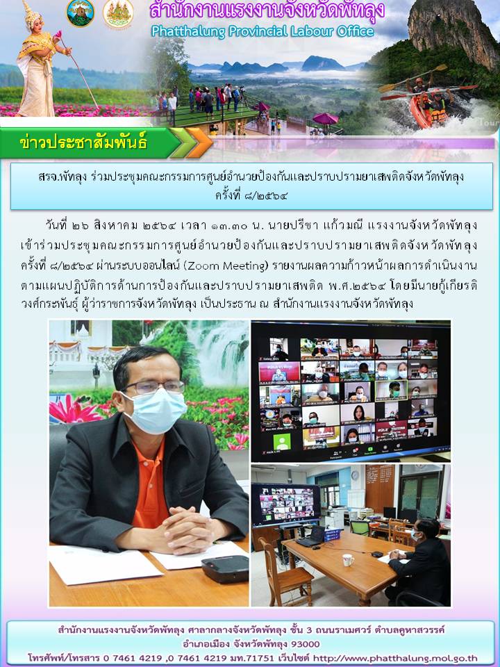 สรจ.พัทลุง ร่วมประชุมคณะกรรมการศูนย์อำนวยป้องกันและปราบปรามยาเสพติดจังหวัดพัทลุง ครั้งที่ 8/2564