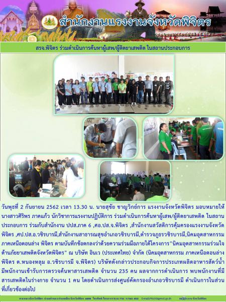 สรจ.พิจิตร ร่วมดำเนินการค้นหาผู้เสพ/ผู้ติดยาเสพติด ในสถานประกอบการ