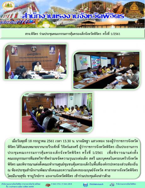 เมื่อวันพุธที่ 18 กรกฎาคม 2561 เวลา 13.30 น. นางณิทฐา แสวงทอง รองผู้ว่าราชการจังหวัดพิจิตร ได้รับมอบหมายจากนายวีระศักดิ์ วิจิตร์แสงศรี ผู้ว่าราชการจังหวัดพิจิตร เป็นประธานการประชุมคณะกรรมการคุ้มครองเด็กจังหวัดพิจิตร ครั้งที่ 1/2561 เพื่อพิจารณาแต่งตั้งคณะอนุกรรมการทีมสหวิชาชีพร่วมขจัดความรุนแรงต่อเด็ก สตรี และบุคคลในครอบครัวจังหวัดพิจิตร และพิจารณาแต่งตั้งคณะทำงานศูนย์ชุมชนคุ้มครองเด็กในพื้นที่องค์กรปกครองส่วนท้องถิ่น ณ ห้องประชุมสำนักงานพัฒนาสังคมและความมั่นคงของมนุษย์จังหวัด ศาลากลางจังหวัดพิจิตร โดยมีนายสุชัย ชาญวิกย์การ แรงงานจังหวัดพิจิตร เข้าร่วมประชุมดังกล่าวด้วย