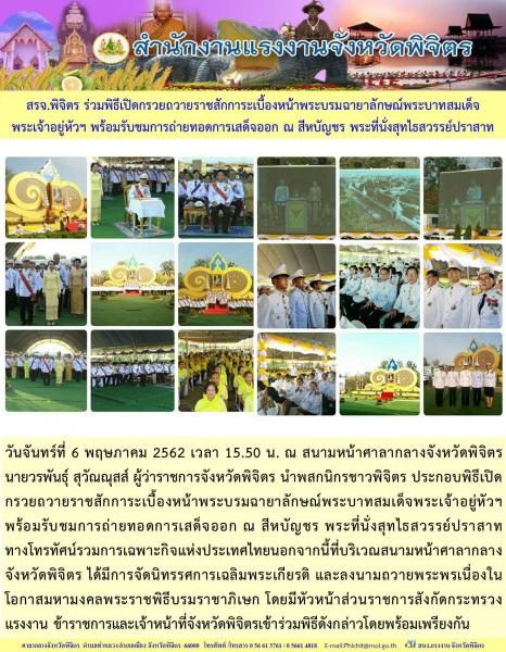 สรจ.พิจิตร ร่วมพิธีเปิดกรวยถวายราชสักการะเบื้องหน้าพระบรมฉายาลักษณ์พระบาทสมเด็จพระเจ้าอยู่หัวฯ พร้อมรับชมการถ่ายทอดการเสด็จออก ณ สีหบัญชร พระที่นั่งสุทไธสวรรย์ปราสาท