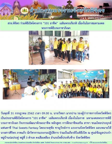 สรจ.พิจิตร ร่วมพิธีเปิดโครงการ “101 อาชีพ” เฉลิมพระเกียรติ เนื่องในโอกาสมหามงคล พระราชพิธีบรมราชาภิเษก