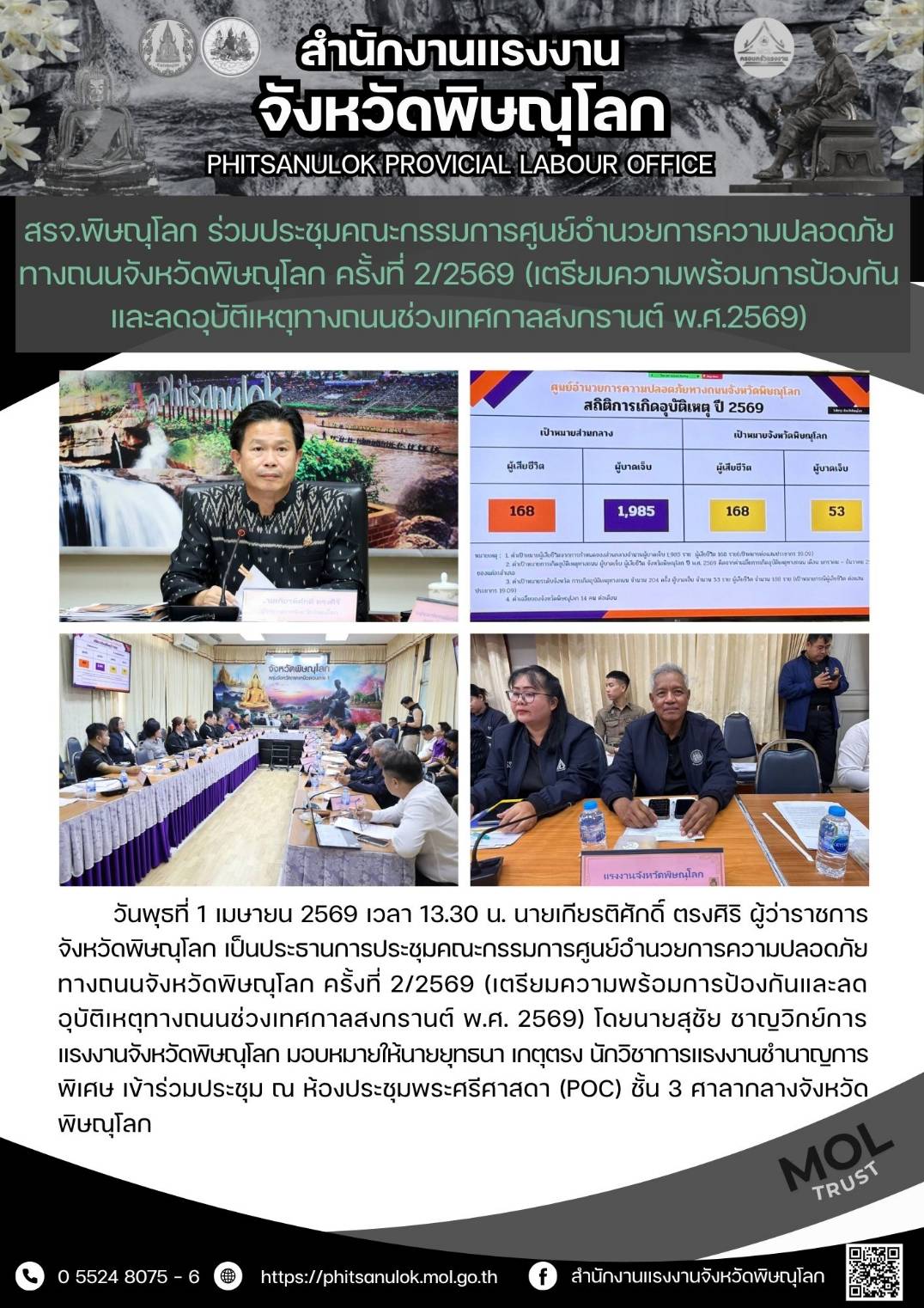 สรจ.พิษณุโลก ร่วมประชุมคณะกรรมการศูนย์อำนวยการความปลอดภัย ทางถนนจังหวัดพิษณุโลก ครั้งที่ 2/2569 (เตรียมความพร้อมการป้องกันและลดอุบัติเหตุทางถนนช่วงเทศกาลสงกรานต์ พ.ศ.2569)