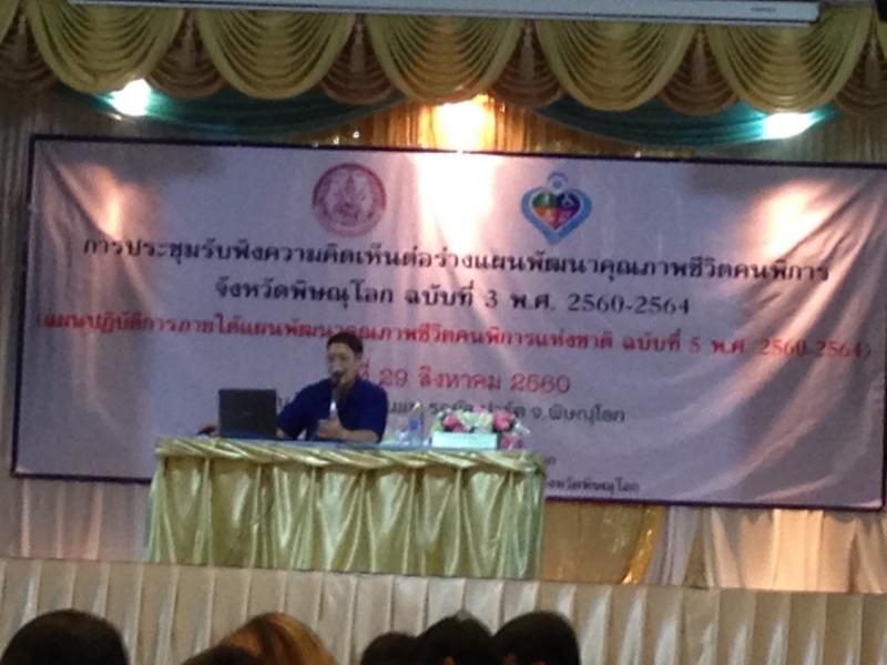 เมื่อวันอังคารที่ 29 สิงหาคม 2560 เวลา 08.00 น. สำนักงานแรงงานจังหวัดพิษณุโลก มอบหมายให้นายยุทธนา เกตุตรง นักวิชาการแรงงานชำนาญการ เข้าร่วมการประชุมรับฟังความคิดเห็นต่อร่างแผนพัฒนาคุณภาพชีวิตคนพิการจังหวัดพิษณุโลก ฉบับที่ 3 พ.ศ. 2560-2564 (แผนปฏิบัติการภายใต้แผนพัฒนาคุณภาพชีวิตคนพิการแห่งชาติ ฉบับที่ 5 พ.ศ. 2560-2564) ณ โรงแรมเรือนแพ รอยัลปาร์ค พิษณุโลก
