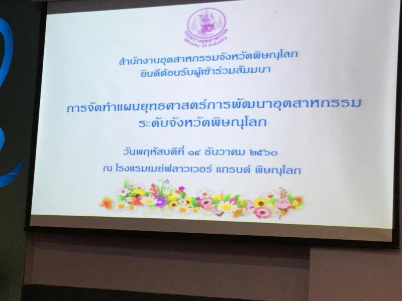 เมื่อวันพฤหัสบดีที่ 14 ธันวาคม 2560 เวลา 9.00 น. นายสุภชัย ไวยาวัจมัย อุตสาหกรรมจังหวัดพิษณุโลก เป็นประธานในการประชุมการจัดทำแผนยุทธศาสตร์การพัฒนาอุตสาหกรรมระดับจังหวัดพิษณุโลก ณ ห้องประชุมธานี 3 โรงแรมเมย์ฟลาวเวอร์ แกรนด์ พิษณุโลก โดยสำนักงานแรงงานจังหวัดพิษณุโลก มอบหมายให้นายจินดา เอมโอช นักวิชาการแรงงานชำนาญการ เข้าร่วมประชุมในวันและเวลาดังกล่าว