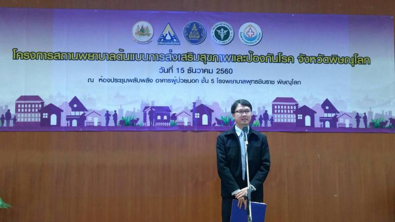 เมื่อวันศุกร์ที่ 15 ธันวาคม 2560 เวลา 10.00 น. นายแพทย์ปิยะ ศิริลักษณ์ นายแพทย์สาธารณสุขจังหวัดพิษณุโลก เป็นประธานในพิธีเปิดโครงการสถานพยาบาลต้นแบบการส่งเสริมสุขภาพและป้องกันโรค จังหวัดพิษณุโลก ณ ห้องประชุมพลับพลึง อาคารผู้ป่วยนอก ชั้น 5 โรงพยาบาลพุทธชินราช พิษณุโลก โดยสำนักงานแรงงานจังหวัดพิษณุโลก มอบหมายให้นายจินดา เอมโอช นักวิชาการแรงงานชำนาญการ เข้าร่วมพิธีเปิดในวันและเวลาดังกล่าว
