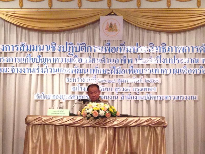 เมื่อวันที่ 27 กุมภาพันธ์ 2560 เวลา 09.30 นายอนุรักษ์ ทศรัตน์ รองปลัดกระทรวงแรงงาน เป็นประธานเปิดการสัมมนาเชิงปฎิบัติการเพื่อเพิ่มประสิทธิภาพการดำเนินงานโครงการแก้ไขปัญหาความเดือดร้อนด้านอาชีพ ประจำปีงบประมาณ พ.ศ. 2560 ระหว่างวันที่ 27 – 28 กุมภาพันธ์ 2560 ณ โรงแรมตวันนา สุรวงศ์ กรุงเทพฯ โดยสำนักงานแรงงานจังหวัดพิษณุโลก มอบหมายให้นายยุทธนา เกตุตรง นักวิชาการแรงงานชำนาญการ เข้าร่วมการสัมมนาฯดังกล่าว