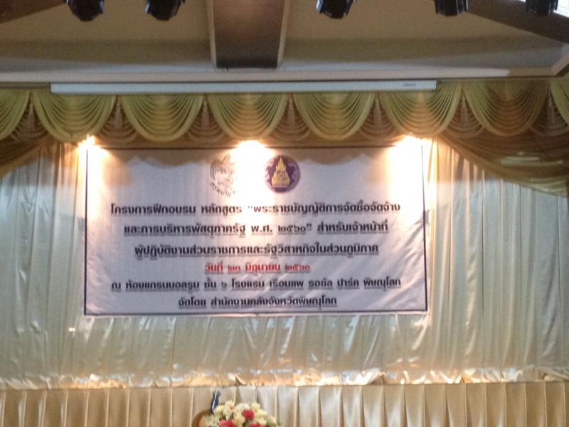 เมื่อวันศุกร์ที่ 23 มิถุนายน 2560 เวลา 09.00 น. นายศุภชัย เอี่ยมสุวรรณ ผู้ว่าราชการจังหวัดพิษณุโลก เป็นประธานเปิดโครงการฝึกอบรม หลักสูตร "พระราชบัญญัติการจัดซื้อจัดจ้างและการบริหารพัสดุภาครัฐ พ.ศ. 2560" สำหรับเจ้าหน้าที่ผู้ปฏิบัติงานของส่วนราชการและรัฐวิสาหกิจในส่วนภูมิภาค ณ ห้องแกรนด์บอลลูน ชั้น 6 โรงแรมเรือนแพ รอยัล ปาร์ค จังหวัดพิษณุโลก โดยสำนักงานแรงงานจังหวัดพิษณุโลก มอบหมายให้นางสาวอังสุมารินทร์ พูลแสง พนักงานพิมพ์ เข้าร่วมโครงการฝึกอบรม ดังกล่าว