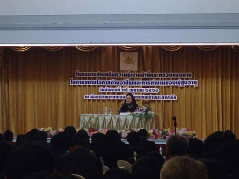 เมื่อวันอังคารที่ 25 เมษายน 2560 เวลา 10.00 น. หม่อมหลวงปุณฑริก สมิติ ปลัดกระทรวงแรงงาน เป็นประธานเปิดโครงการส่งเสริมความรู้เจ้าหน้าที่กระทรวงแรงงาน ในการขยายโอากาสด้านอาชีพและการทำงานของผู้สูงอายุ ณ ห้องเจ้าพระยาบอลรูม โรงแรมเจ้าพระยาปาร์ค กรุงเทพฯ โดยมีหัวหน้าส่วนราชการในสังกัดกระทรวงแรงงาน ทั่วประเทศ เข้าร่วมโครงการดังกล่าว ส่วนจังหวัดพิษณุโลก มีหัวหน้าส่วนราชการและผู้แทน ในสังกัดกระทรวงแรงาน เข้าร่วมโครงการฯ