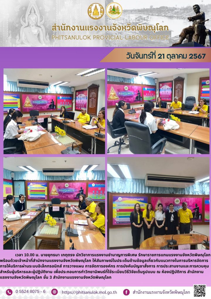 สรจ.พิษณุโลก ให้สัมภาษณ์ในประเด็นด้านข้อมูลเกี่ยวกับแนวทางในการบริหารจัดการการให้บริการผ่านระบบอิเล็กทรอนิกส์ การวางแผน การจัดการองค์กร การบังคับบัญชาสั่งการ การประสานงานและการควบคุมสำหรับผู้บริหารและผู้ปฏิบัติงาน เพื่อประกอบการทำวิทยานิพนธ์ที่ใช้ระเบียบวิธีวิจัยเต็มรูปแบบ