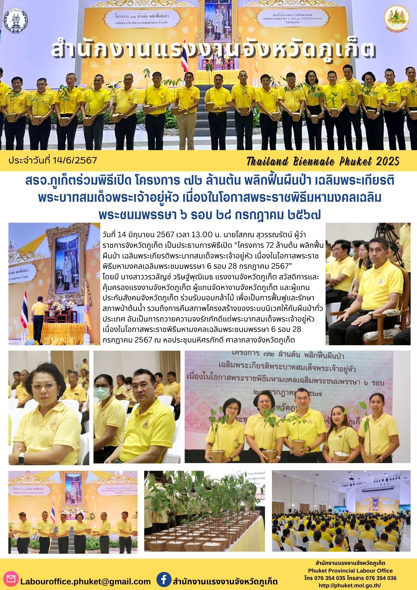 สรจ.ภูเก็ตเข้าร่วมพิธีเปิด “โครงการ 72 ล้านต้น พลิกฟื้นผืนป่าเฉลิมพระเกียรติพระบาทสมเด็จพระเจ้าอยู่หัว เนื่องในโอกาสพระราชพิธีมหามงคลเฉลิมพระชนมพรรษา 6 รอบ 28 กรกฎาคม 2567”