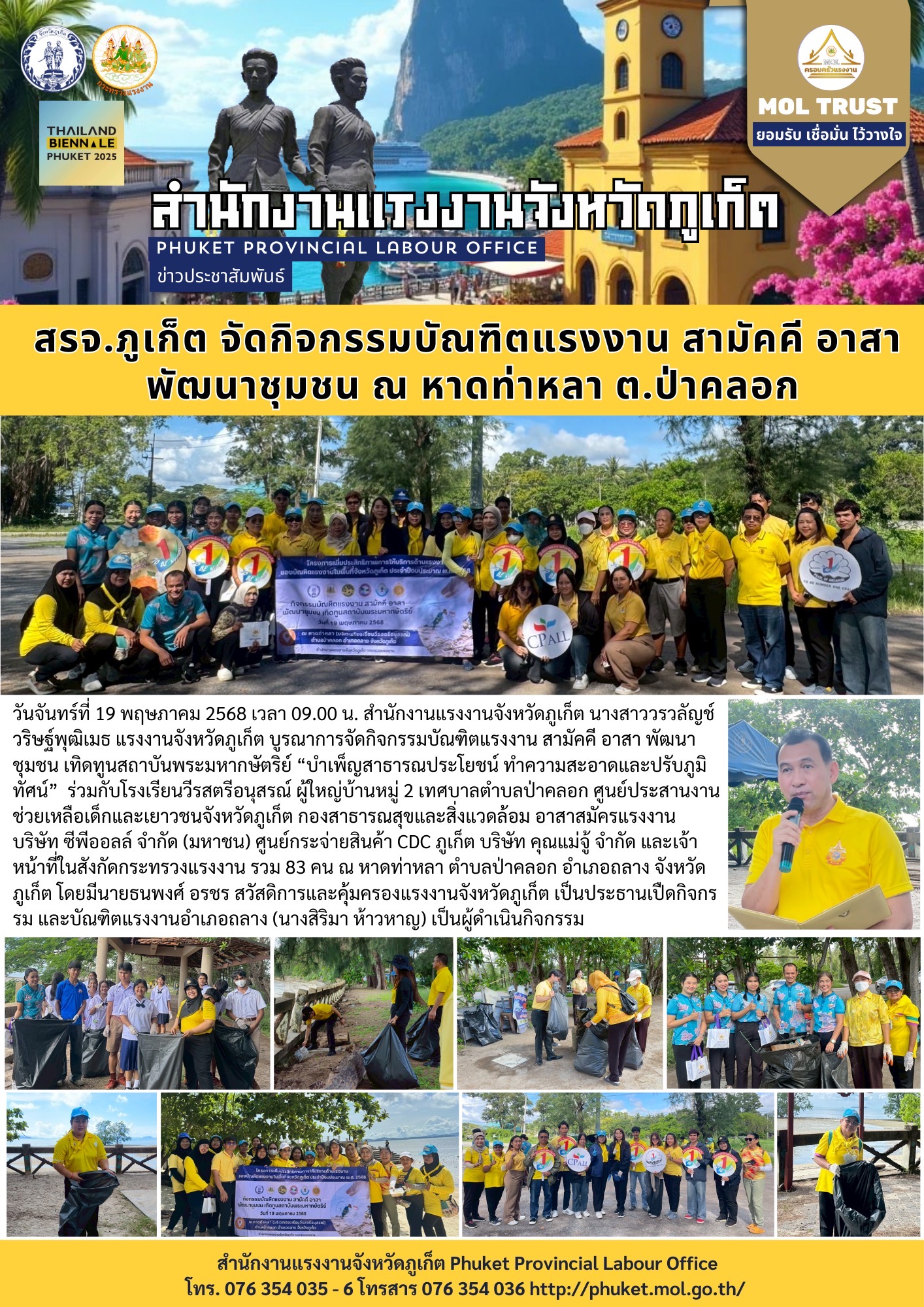 สรจ.ภูเก็ต จัดกิจกรรมบัณฑิตแรงงาน สามัคคี อาสา พัฒนาชุมชน ณ หาดท่าหลา ต.ป่าคลอก