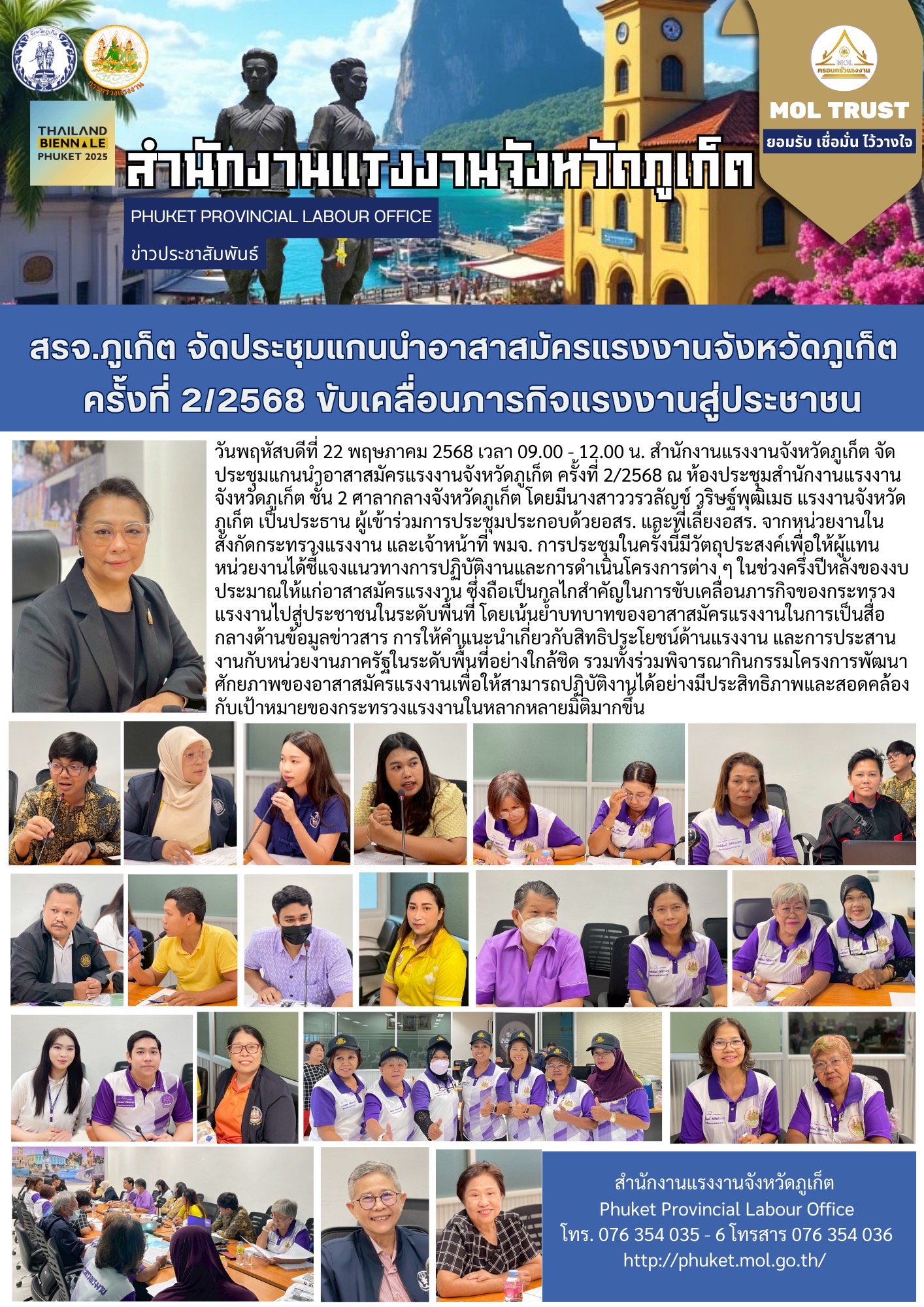 สรจ.ภูเก็ต จัดประชุมแกนนำอาสาสมัครแรงงานจังหวัดภูเก็ตครั้งที่ 2/2568 ขับเคลื่อนภารกิจแรงงานสู่ประชาชน