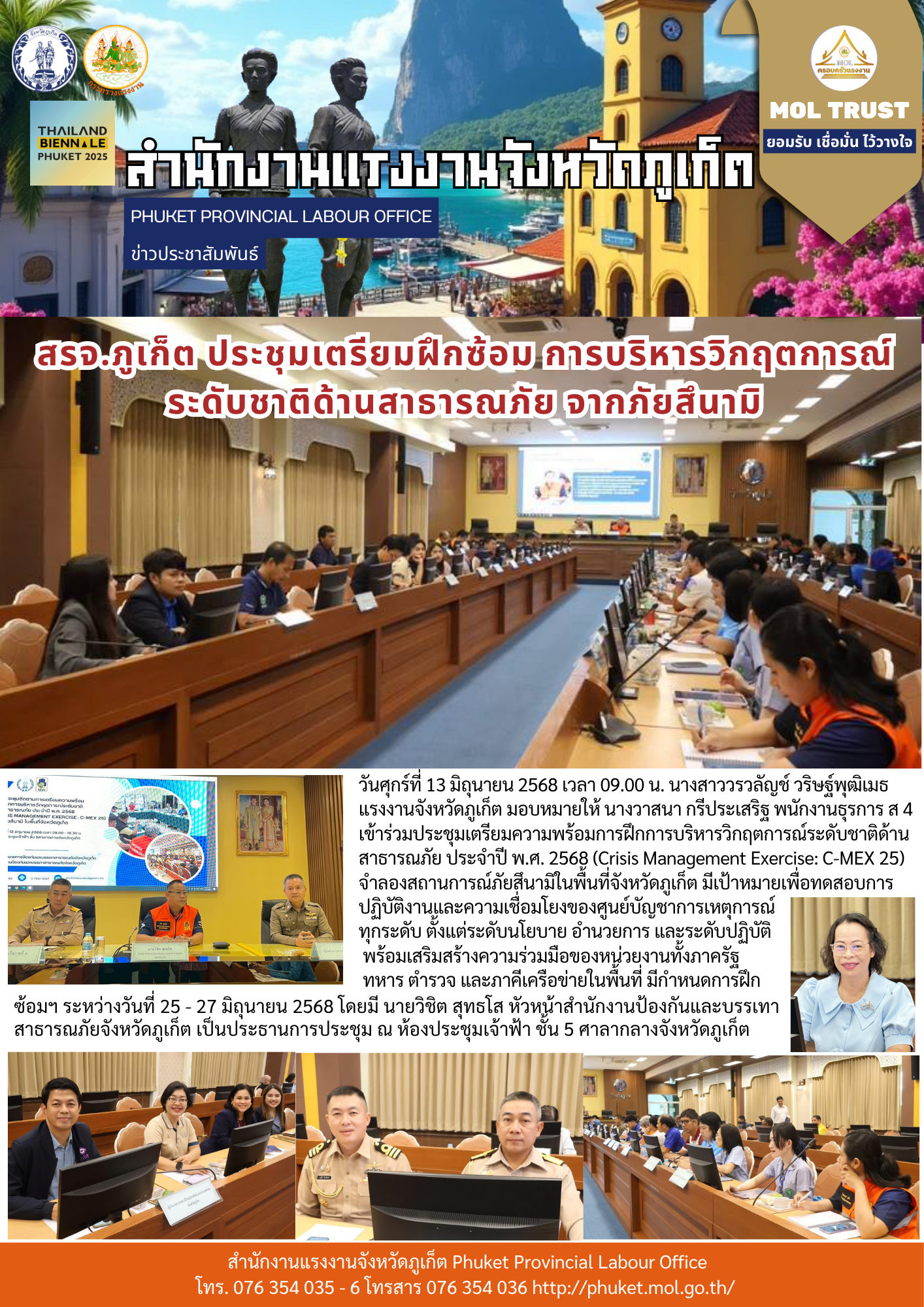สรจ.ภูเก็ต ประชุมเตรียมฝึกซ้อม การบริหารวิกฤตการณ์ระดับชาติด้านสาธารณภัย จากภัยสึนามิ