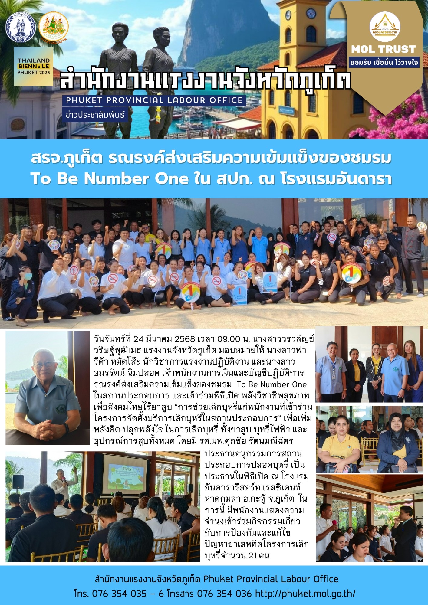 สรจ.ภูเก็ต รณรงค์ส่งเสริมความเข้มแข็งของชมรม To Be Number One ใน สปก. ณ โรงแรมอันดารา