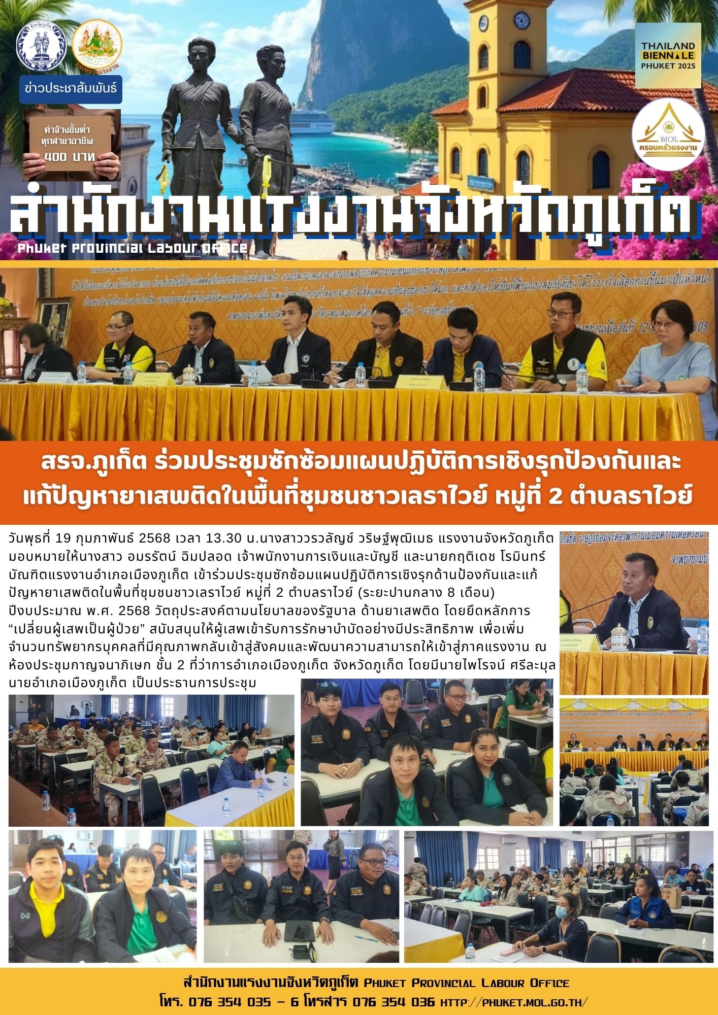 สรจ.ภูเก็ต ร่วมประชุมซักซ้อมแผนปฏิบัติการเชิงรุกป้องกันและแก้ปัญหายาเสพติดในพื้นที่ชุมชนชาวเลราไวย์ หมู่ที่ 2 ตำบลราไวย์