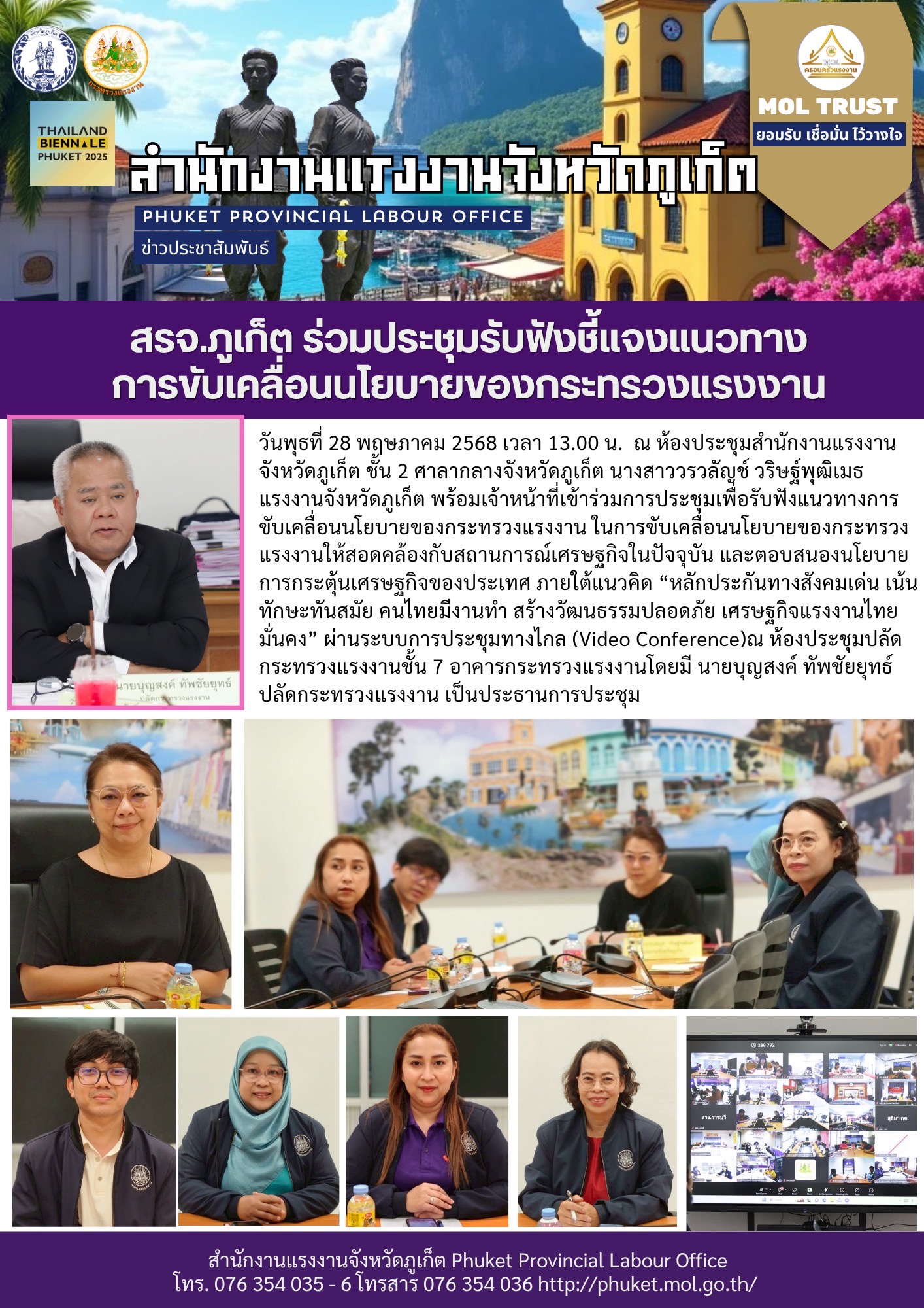 สรจ.ภูเก็ต ร่วมประชุมรับฟังชี้แจงแนวทางการขับเคลื่อนนโยบายของกระทรวงแรงงาน