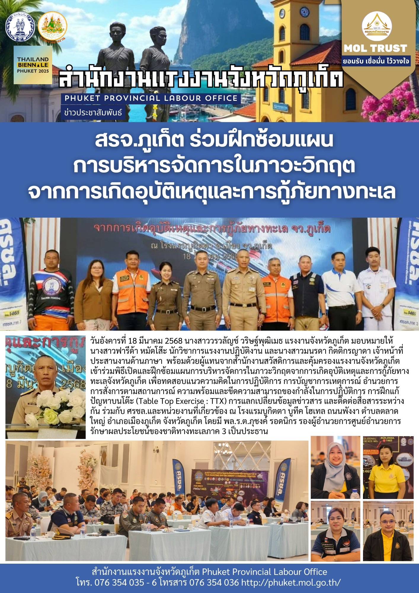 สรจ.ภูเก็ต ร่วมฝึกซ้อมแผนการบริหารจัดการในภาวะวิกฤตจากการเกิดอุบัติเหตุและการกู้ภัยทางทะเล