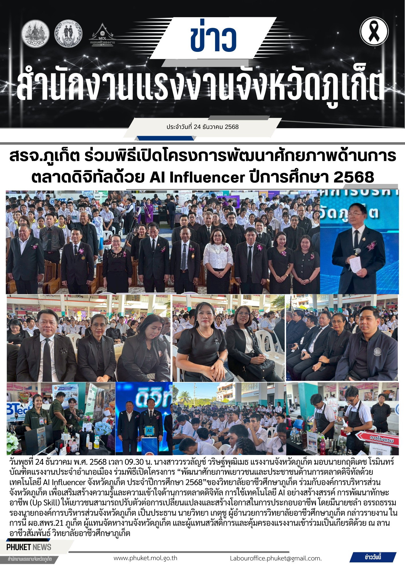 สรจ.ภูเก็ต ร่วมพิธีเปิดโครงการพัฒนาศักยภาพด้านการตลาดดิจิทัลด้วย AI Influencer ปีการศึกษา 2568
