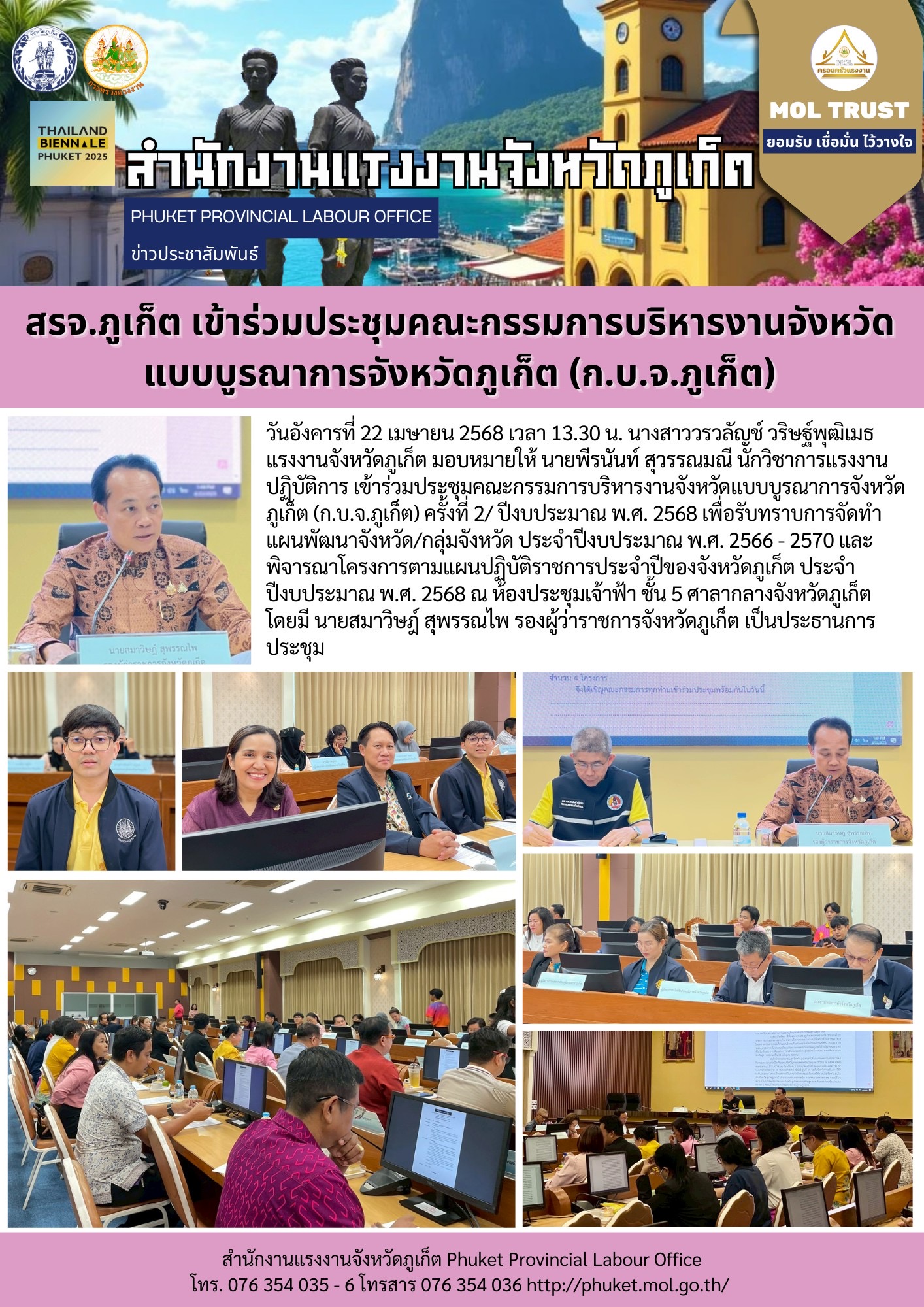 สรจ.ภูเก็ต เข้าร่วมประชุมคณะกรรมการบริหารงานจังหวัดแบบบูรณาการจังหวัดภูเก็ต (ก.บ.จ.ภูเก็ต)
