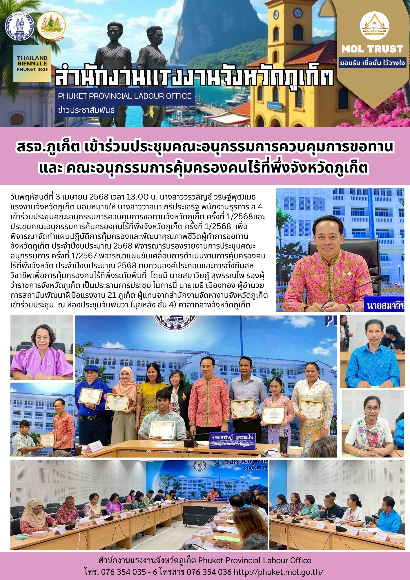 สรจ.ภูเก็ต เข้าร่วมประชุมคณะอนุกรรมการควบคุมการขอทานและคณะอนุกรรมการคุ้มครองคนไร้ที่พึ่งจังหวัดภูเก็ต