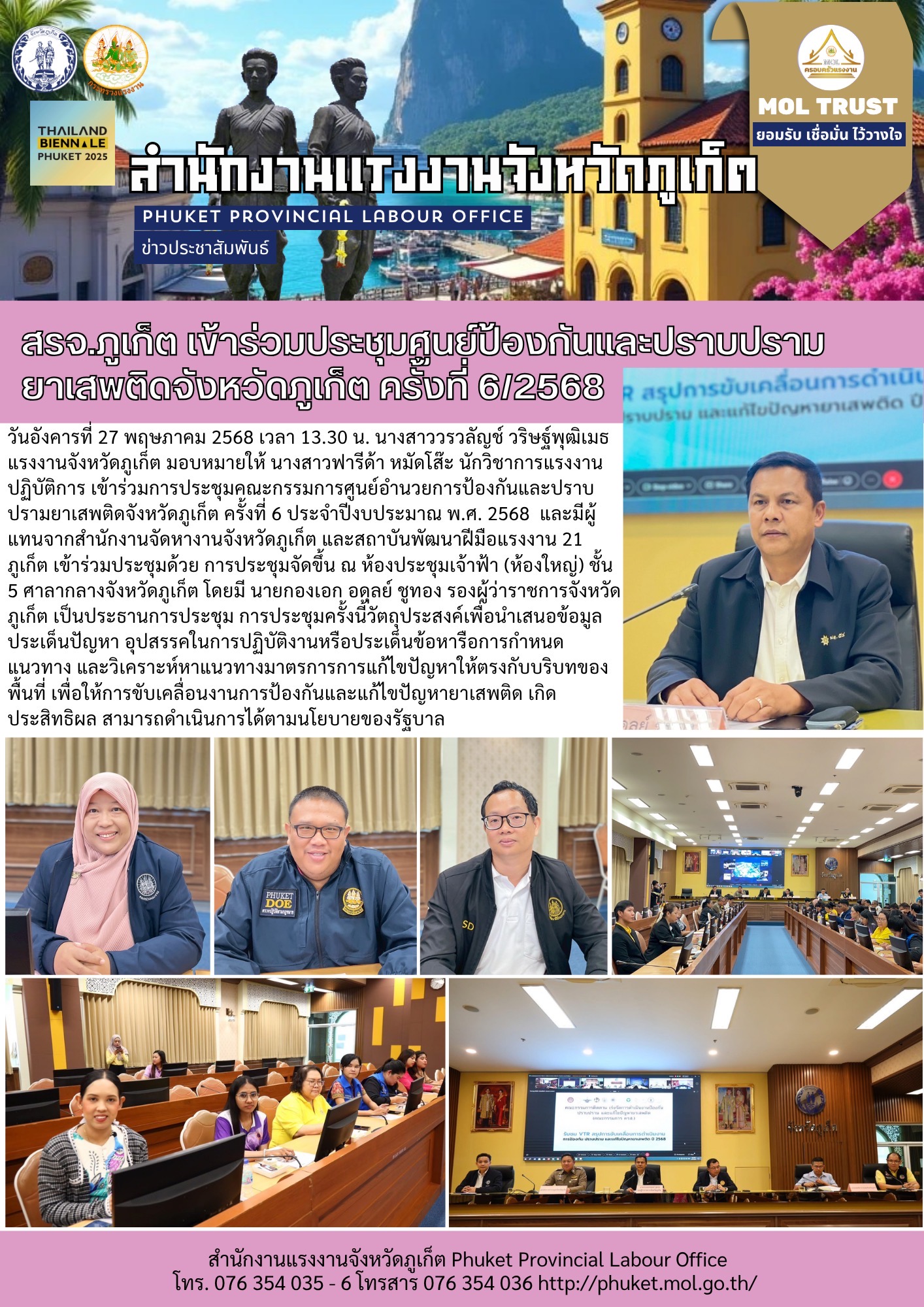 สรจ.ภูเก็ต เข้าร่วมประชุมศูนย์ป้องกันและปราบปรามยาเสพติดจังหวัดภูเก็ต ครั้งที่ 6/2568