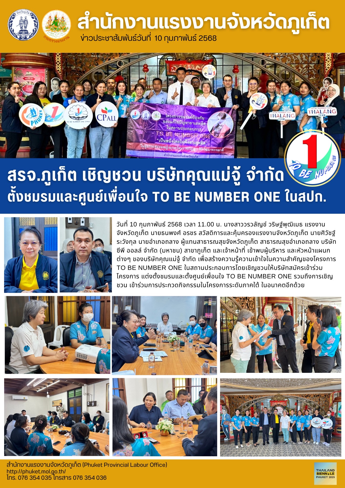 สรจ.ภูเก็ต เชิญชวน บริษัทคุณแม่จู้ จำกัด ตั้งชมรมและศูนย์เพื่อนใจ TO BE NUMBER ONE ในสปก.
