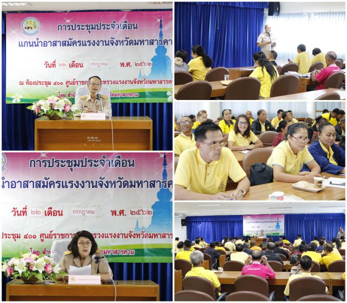 วันที่ 22 ก.ค. 2562 นายคเณศ พรตระกูลพิพัฒน์ แรงงานจังหวัดมหาสารคาม เป็นประธานการประชุมอาสาสมัครแรงงานระดับตำบล ประจำเดือนกรกฎาคม 2562 พี่เลี้ยงอาสาสมัครแรงงานจากหน่วยงานในสังกัดร่วมชี้แจงและติดตามผลการดำเนินงาน พร้อมมอบหมายภารกิจการดำเนินงานประจำเดือนสิงหาคม 2562 ณ ห้องประชุม 401 สำนักงานแรงงานจังหวัดมหาสารคาม อาคารศูนย์ราชการกระทรวงแรงงาน