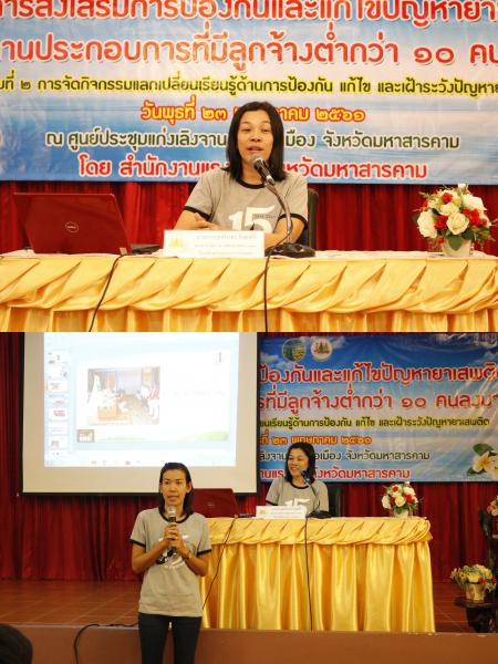 เมื่อวันที่ 23 พ.ค.61 สำนักงานแรงงงานจังหวัดมหาสารคาม จัดกิจกรรมการแลกเปลี่ยนเรียนรู้การป้องกัน แก้ไข และเฝ้าระวังปัญหายาเสพติด ตามโครงการส่งเสริมการป้องกันและแก้ไขปัญหายาเสพติดในสถานประกอบการที่มีลูกจ้างต่ำกว่า 10 คนลงมา โดยมีท่านรองผู้ว่าราชการจังหวัดมหาสารคาม นายทวี เสริมภักดีกุล เป็นประธานในพิธีเปิดโครงการและมอบนโยบาย และคุณนุชจรินทร์ ภิเษกศิริ จากชมรม TO BE NUMBER ONE ไทยเพิ่มพูลโฮมช๊อป สาขาร้อยเอ็ด (รักษามาตรฐานต้นแบบระดับเงิน ปีที่ 1) ร่วมแลกเปลี่ยนเรียนรู้การป้องกันและแก้ไขปัญหายาเสพติดในสถานประกอบการ พร้อมแบ่งกลุ่มระดมความคิดเห็นเกี่ยวกับปัญหาอุปสรรคและแนวทางการแก้ไขปัญหาในการปฏิบัติงานของอาสาสมัครแรงงานร่วมกับสถานประกอบกิจการในครั้งนี้ด้วย