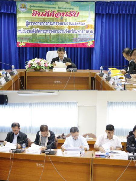 วันที่ 4 กันยายน 2561 นายสมเกียรติ บุญทอง ผู้ตรวจราชการกระทรวงแรงงาน นายพิชิต นิลทองคำ ผู้ตรวจราชการกรม กรมการจัดหางาน นายวิชัย ผิวสอาด ผู้ตรวจราชการกรม กรมพัฒนาฝีมือแรงงาน และนายอนันต์ บวรเนาวรักษ์ ผู้ตรวจราชการกรม กรมสวัสดิการและคุ้มครองแรงงาน ประชุมตรวจติดตามผลการปฏิบัติงาน ตามประเด็นแผนการตรวจราชการของผู้ตรวจราชการกระทรวงแรงงานประจำปีงบประมาณ พ.ศ.2561 รอบที่ 3 (Monitoring/Evaluation) ณ ห้องประชุม 401 ศูนย์ราชการกระทรวงแรงงานจังหวัดมหาสารคาม