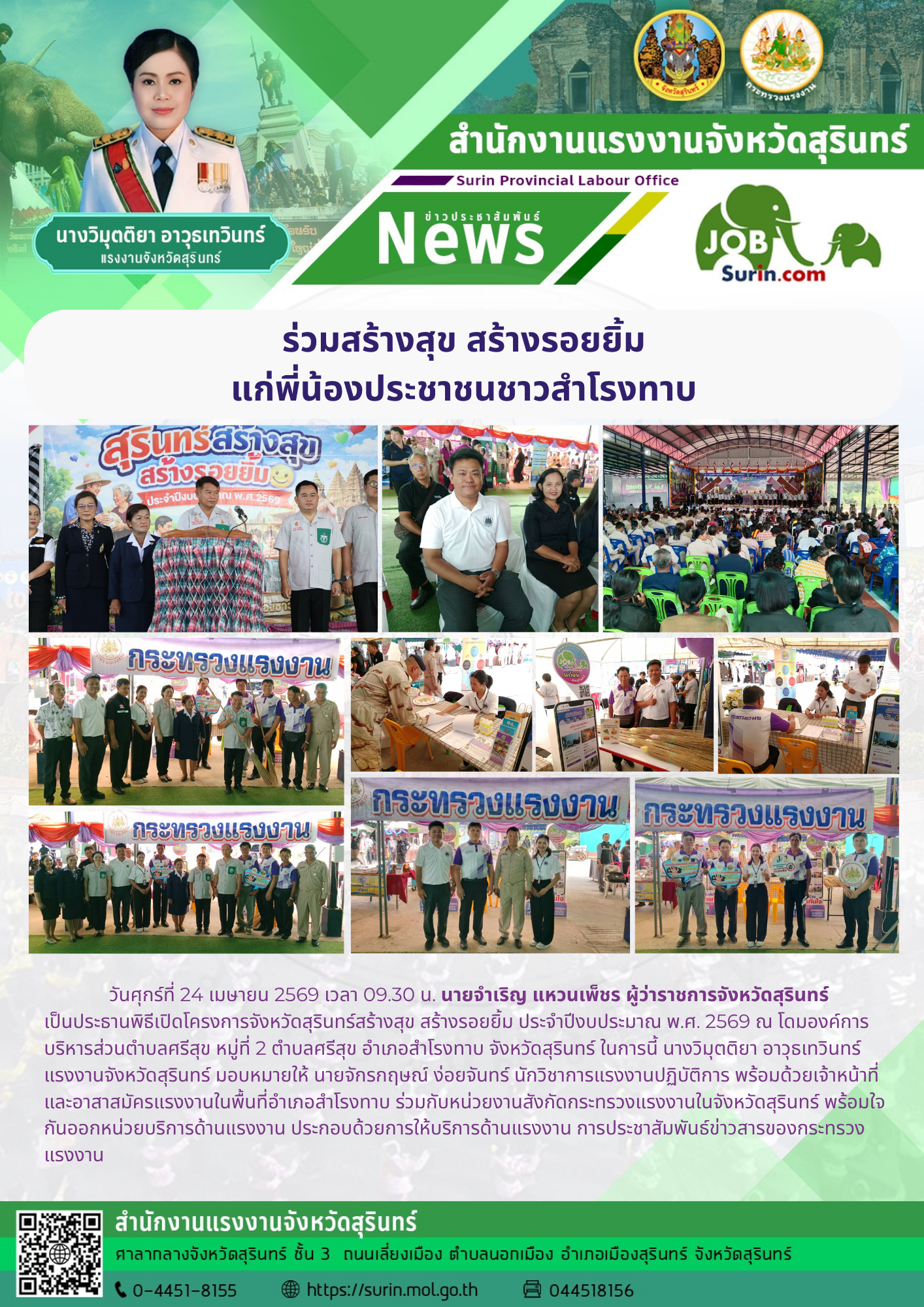 วันจันทร์ที่ 3 เมษายน 2566 เวลา 09.00 น. นายบุญตา ศิริจันทร์ แรงงานจังหวัดมุกดาหาร มอบหมาย นายวาปี ศรีวงษ์ พนักงานธุรการ ส4 และนายเจนณรงค์ แน่นอุดร เจ้าหน้าที่วิเคราะห์และประมวลผล ร่วมกิจกรรมจิตอาสาพัฒนาวันสำคัญของชาติ วันคล้ายวันพระราชสมภพ สมเด็จพระกนิษฐาธิราชเจ้า กรมสมเด็จพระเทพรัตนราชสุดาฯ สยามบรมราชกุมารี ณ ศูนย์การศึกษาพิเศษประจำจังหวัดมุกดาหาร ตำบลบางทรายใหม่ อำเภอเมืองมุกดาหาร จังหวัดมุกดาหาร โดยมีนายวรญาณ บุญณราช ผู้ว่าราชการจังหวัดมุกดาหาร เป็นประธานเปิดกิจกรรมจิตอาสา เพื่อน้อมสำนึกในพระมหากรุณาธิคุณฯ ที่ทรงปฏิบัติพระราชกรณียกิจใน