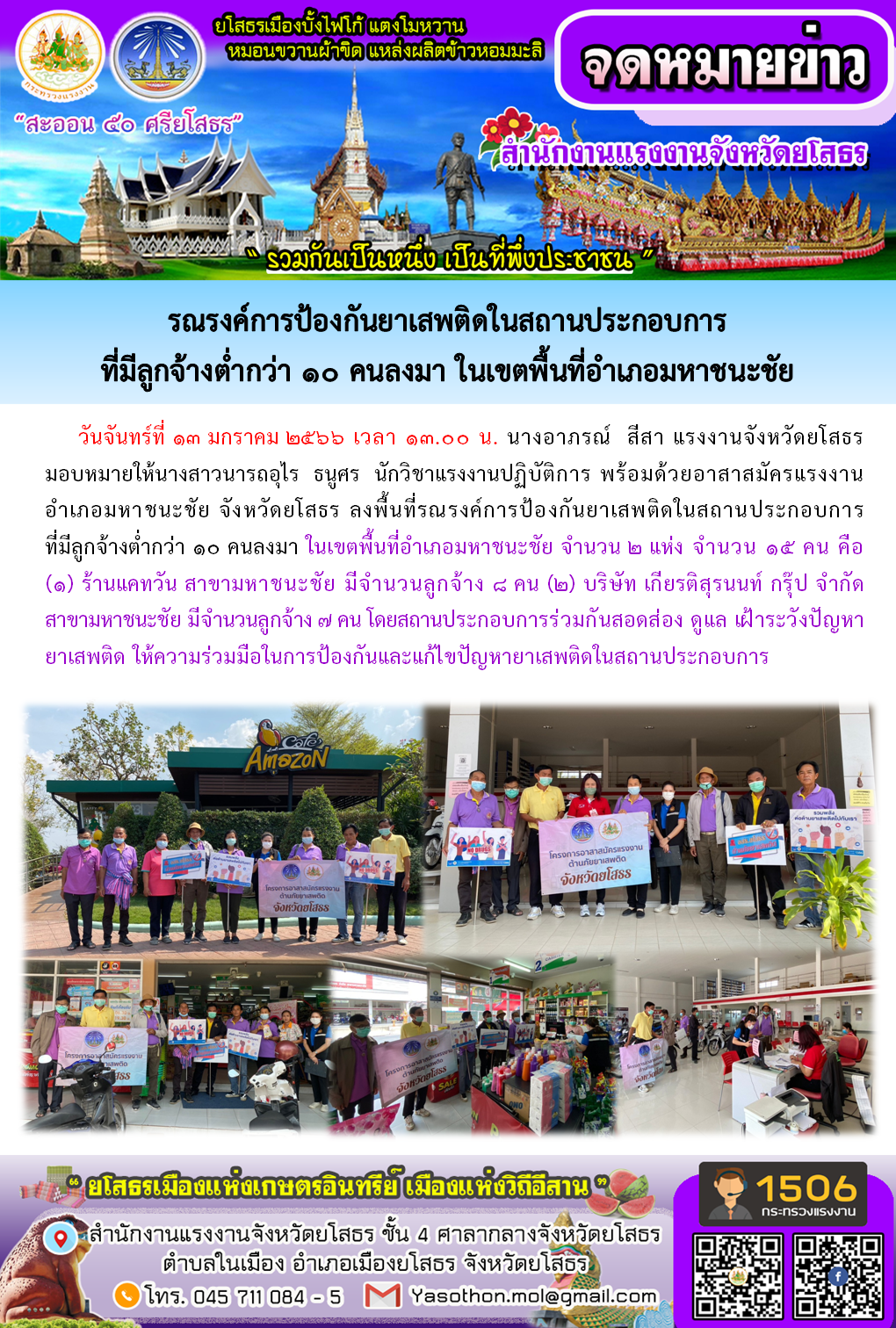 สรจ.ยส.ลงพื้นที่การบูรณาการตรวจสถานประกอบการกลุ่มเสี่ยงในสถานประกอบกิจการ จังหวัดยโสธร ครั้งที่ 2 ประจำปีงบประมาณ พ.ศ. 2566 ในเขตพื้นที่อำเภอมหาชนะชัย